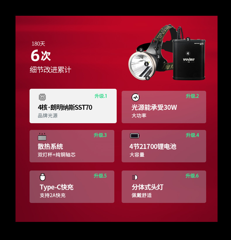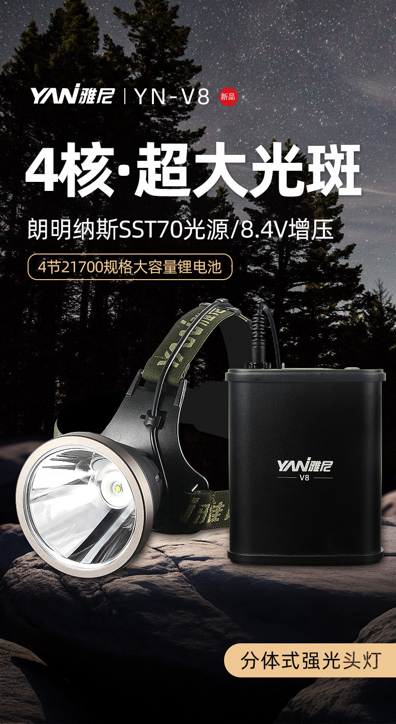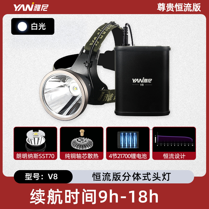 야니 V8 분리형 강력 헤드램프 초강력 헤드램프 야외 조명 고출력 광부등 초장시간 배터리