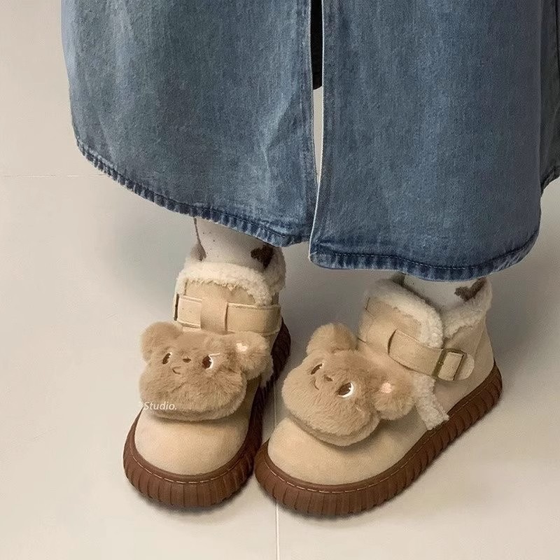 패션 부족 기모 마오 마오 스노우 부츠 어린이 2024 겨울 새로운 두꺼운 따뜻한 코튼 신발 미끄럼 방지 발목 부츠스토어 가기