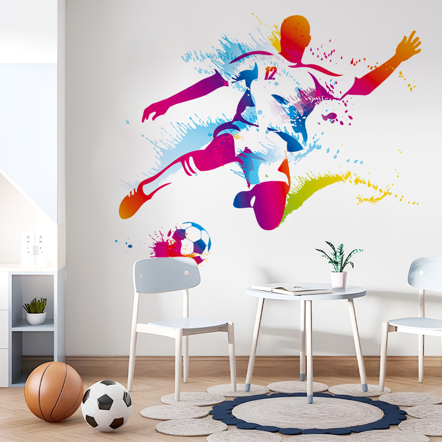 수채화 강한 잉크 스타일 활기찬 스포츠 자체 접착 벽 스티커 클럽 체육관 어린이 방 장식 벽 스티커