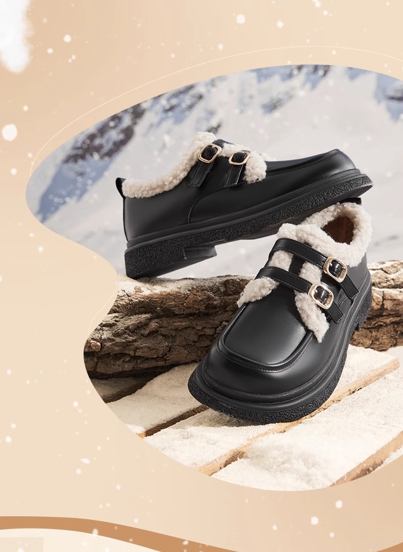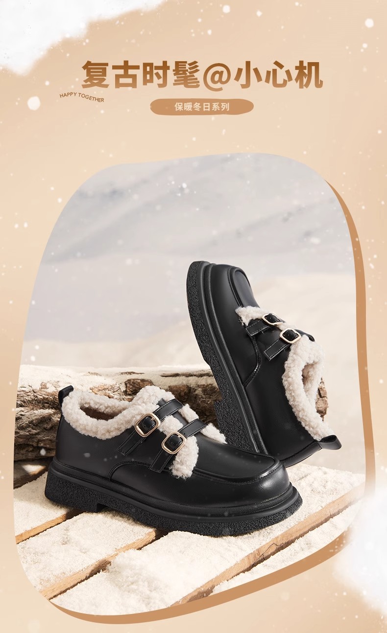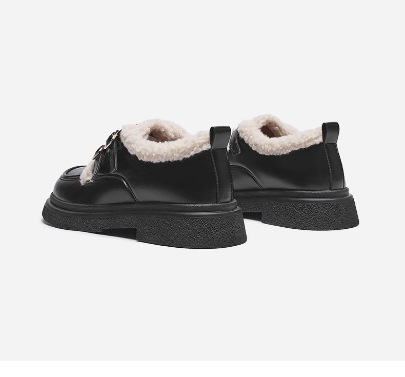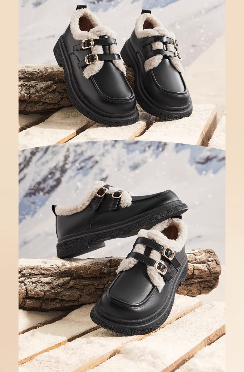두꺼운 밑창 영국 스타일의 가죽 신발 여성 가을과 겨울 2024 새로운 푹신한 신발 머핀 로퍼 기모 따뜻한 면화 신발스토어 가기