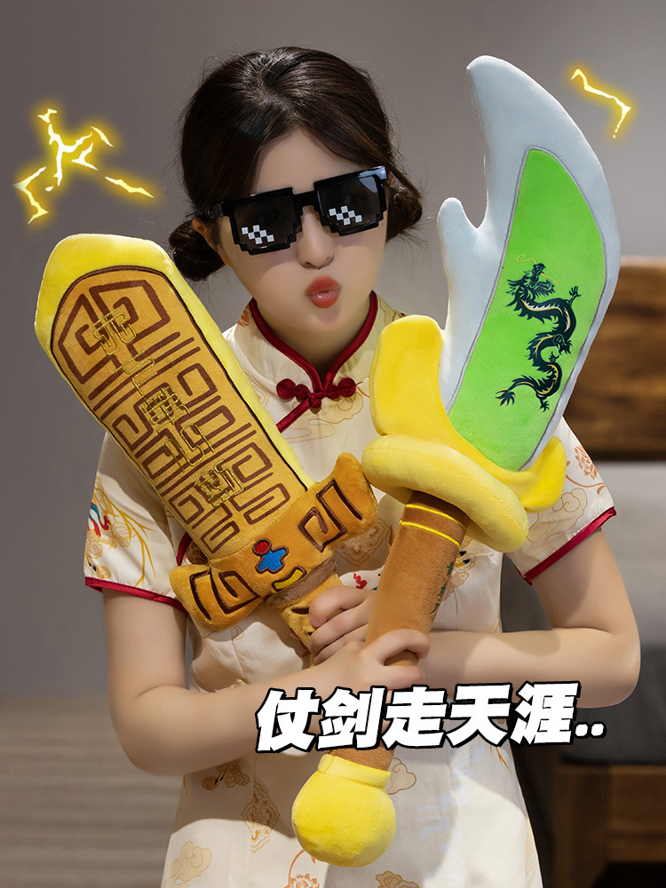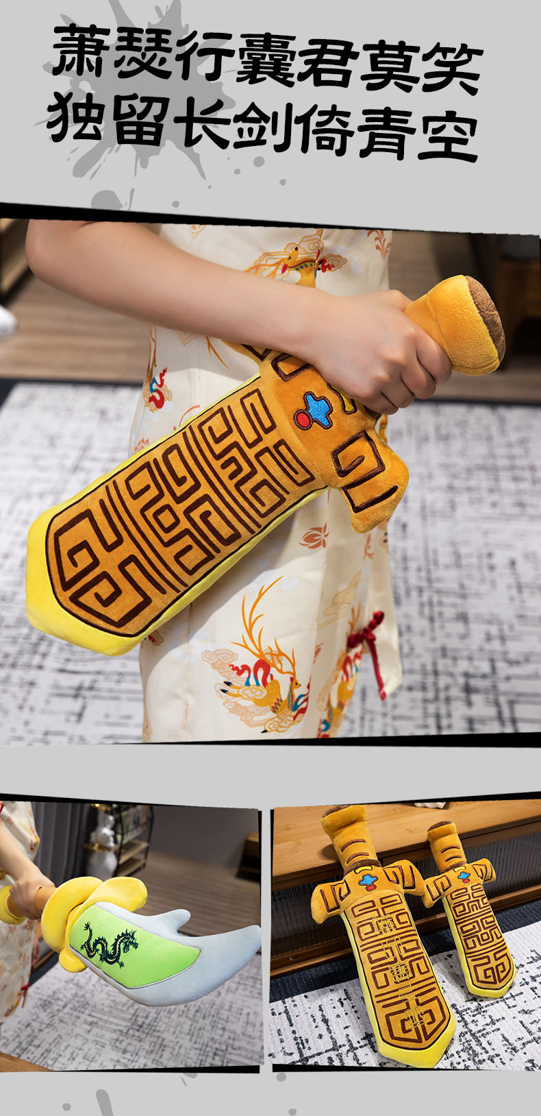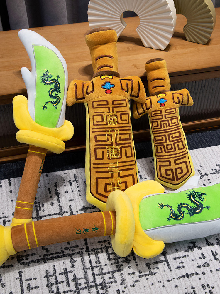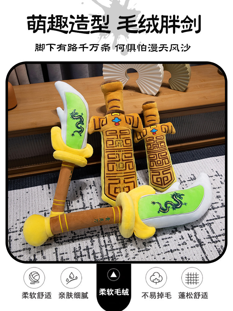 문 열기 용 초승달 칼 봉제 장난감 Xuanyuan 검 인형 베개 소년 시뮬레이션 칼 국경 무기