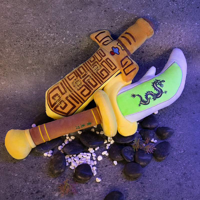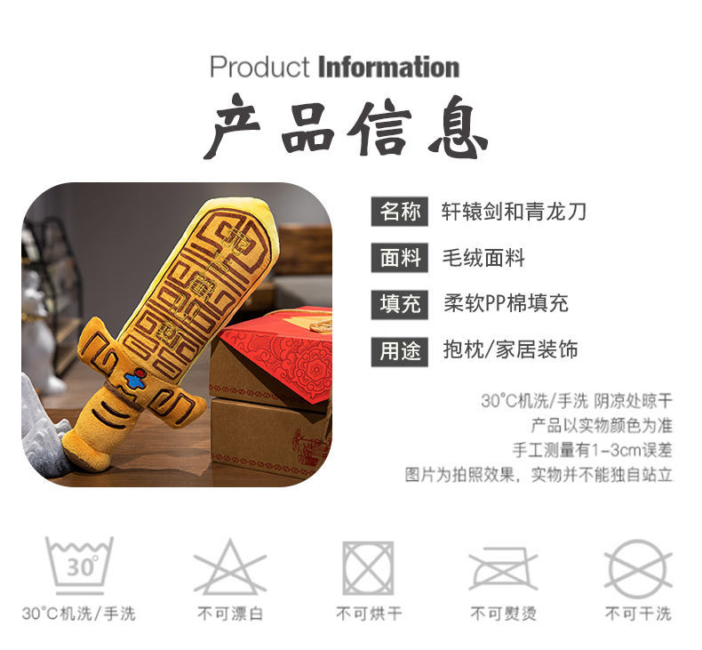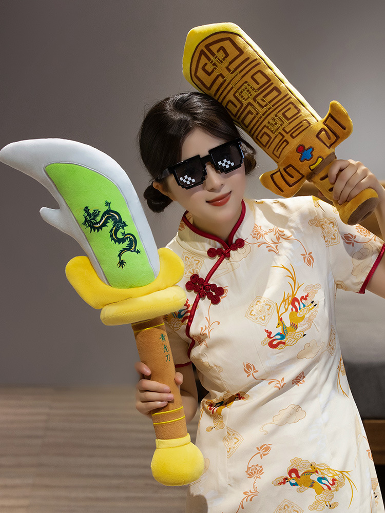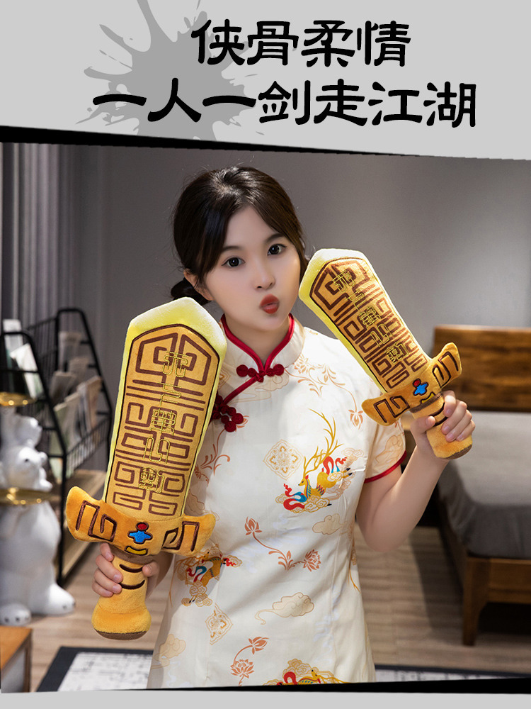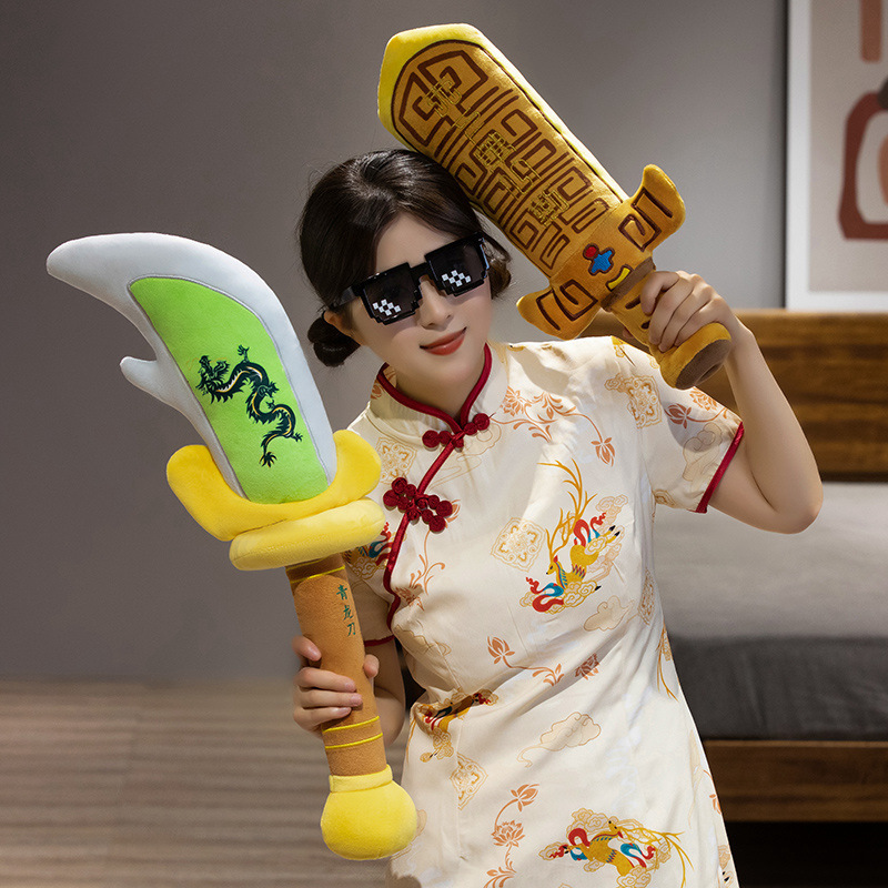 문 열기 용 초승달 칼 봉제 장난감 Xuanyuan 검 인형 베개 소년 시뮬레이션 칼 국경 무기