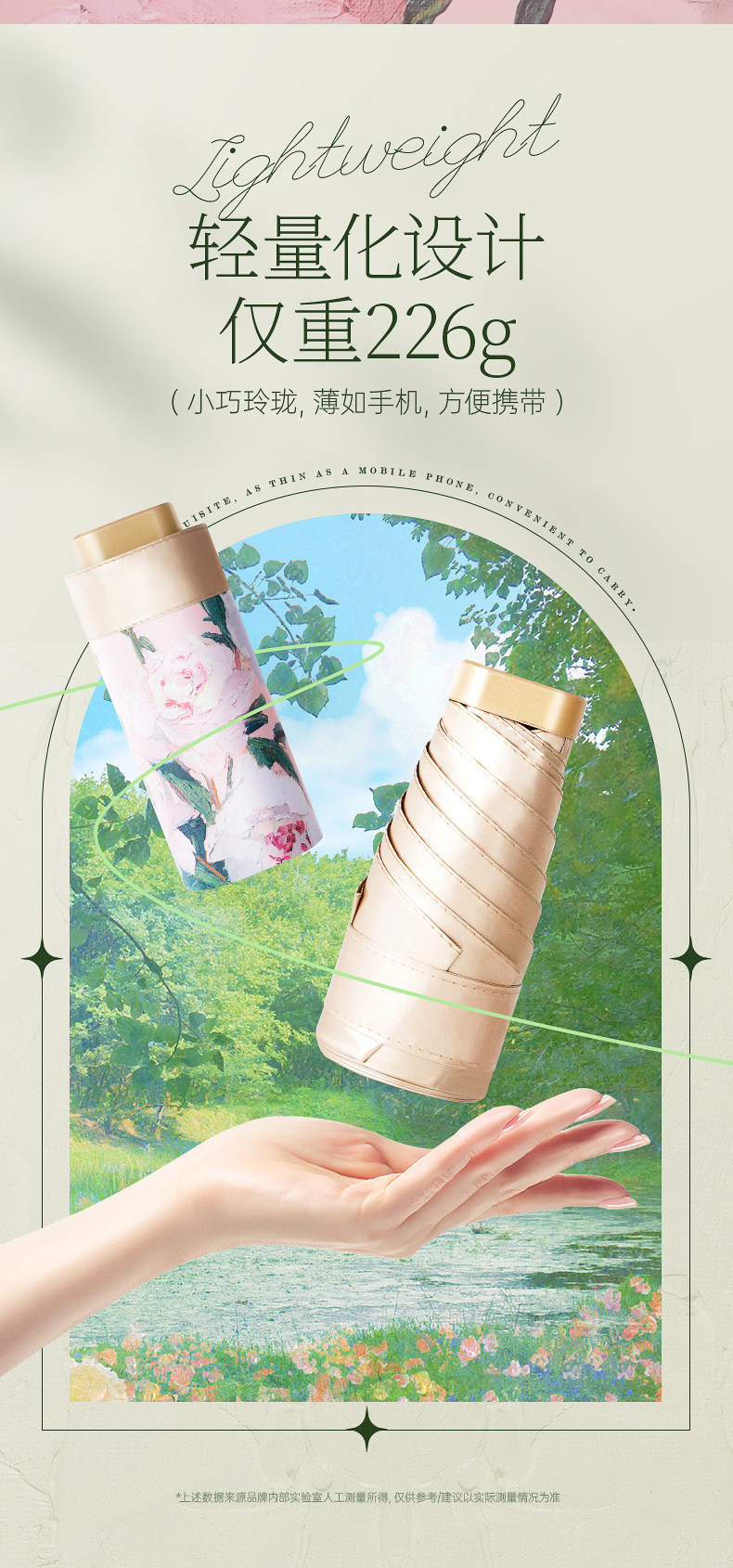 우산 소형 휴대용 초경량 맑고 비오는 이중 사용 5 배 햇살 우산 여성의 태양 보호 UV 보호 미니 우산 우산