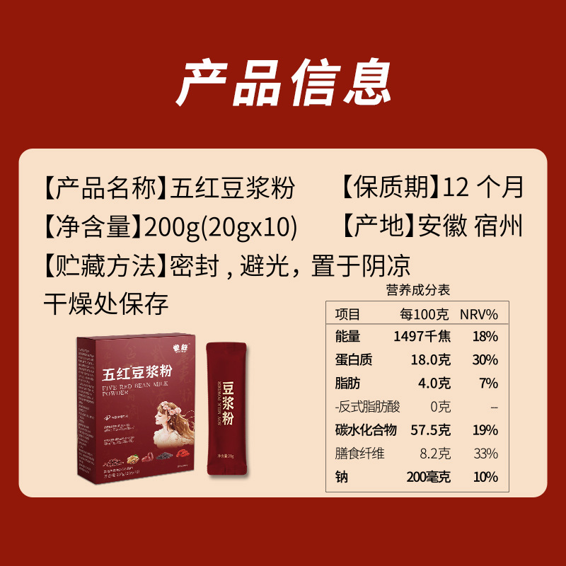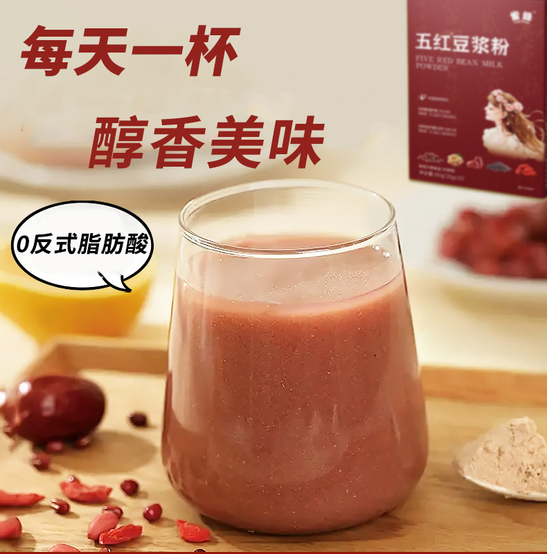 实力工厂五红豆浆粉膳食纤维速食早餐粉益生菌红枣枸杞红豆豆浆粉
