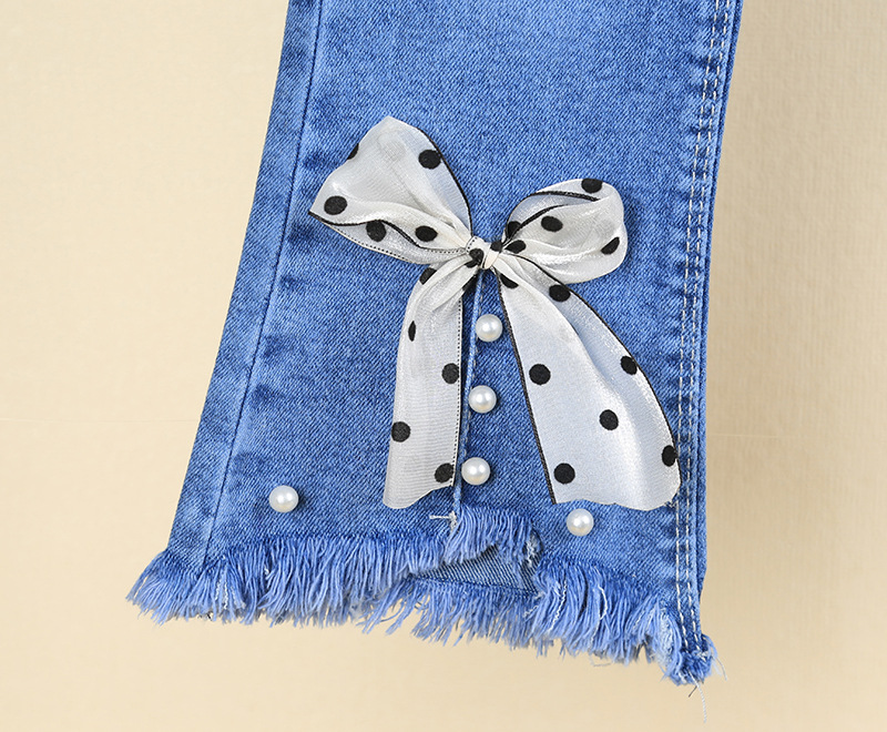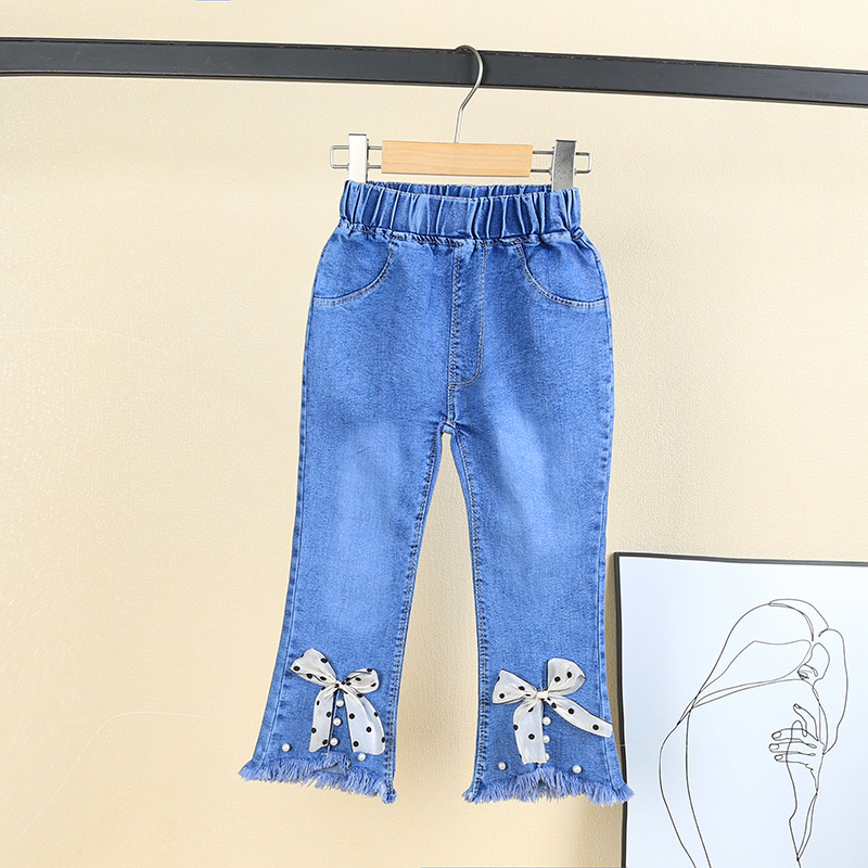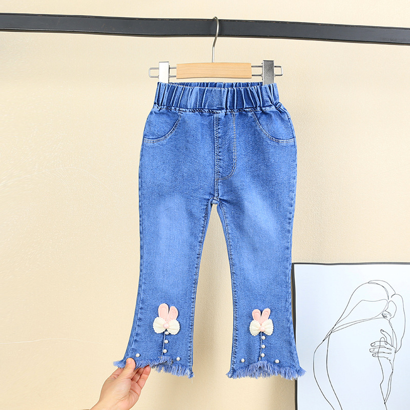 어린이 착용 소녀 데님 꽃 바지 봄과 가을 새로운 2025 패션 슬림 핏 서양식 구슬 아기 소녀 바지스토어 가기