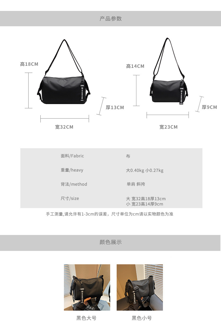 새로운 도착 블랙 실린더 가방 Ins 캐주얼 올 매치 패셔너블 옥스포드 천 크로스 바디 숄더 백 스포츠 여행 크로스 바디 백스토어 가기
