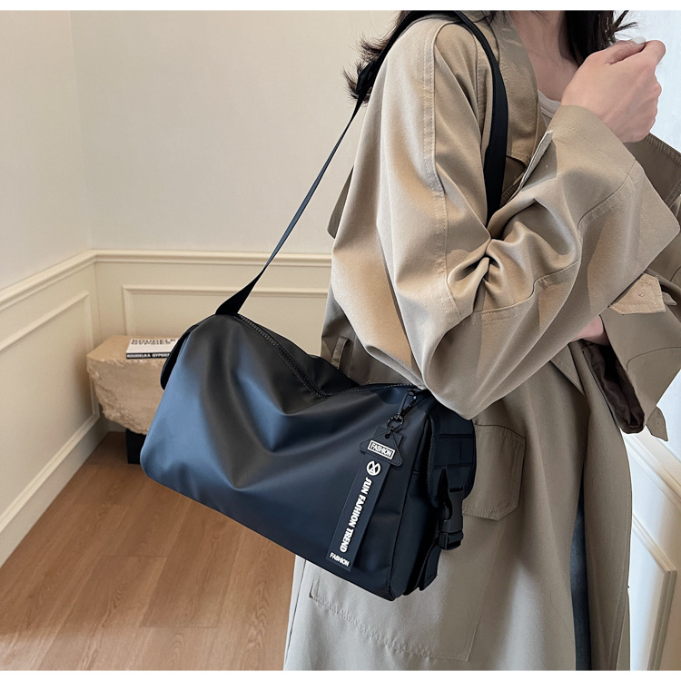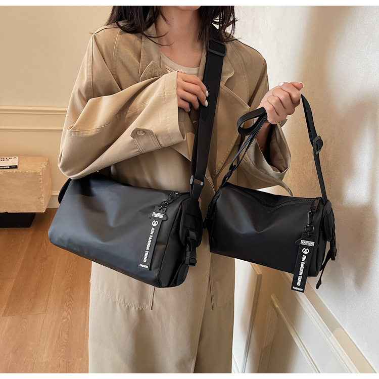 새로운 도착 블랙 실린더 가방 Ins 캐주얼 올 매치 패셔너블 옥스포드 천 크로스 바디 숄더 백 스포츠 여행 크로스 바디 백