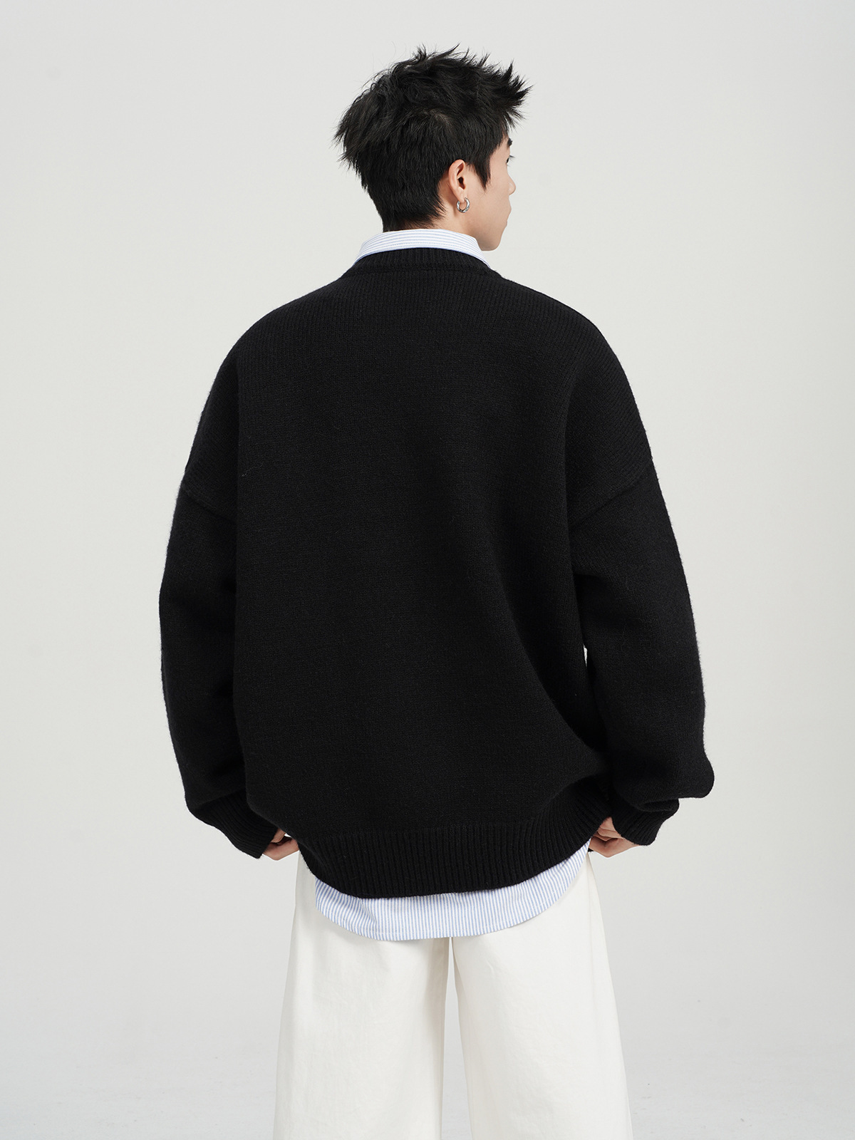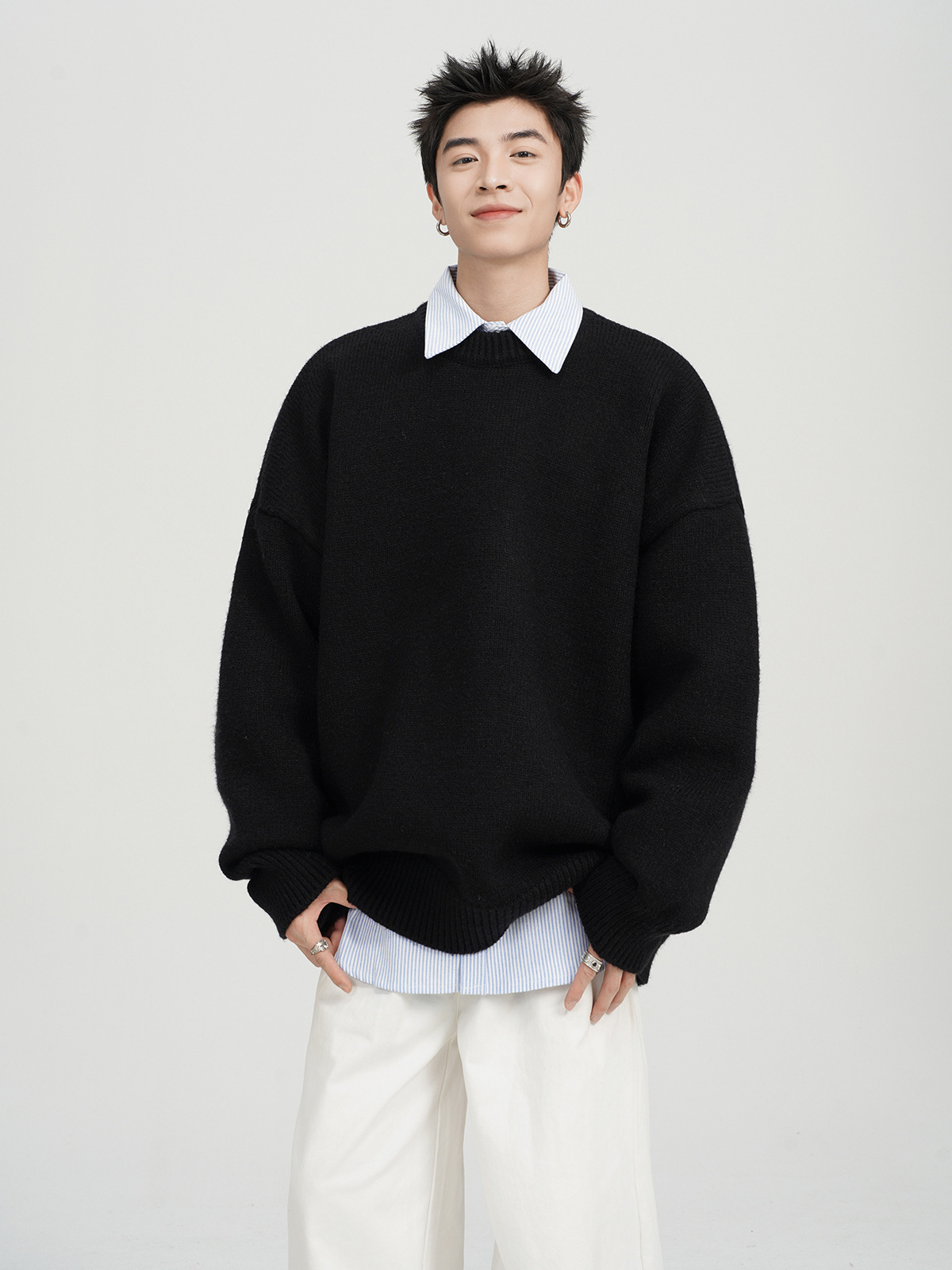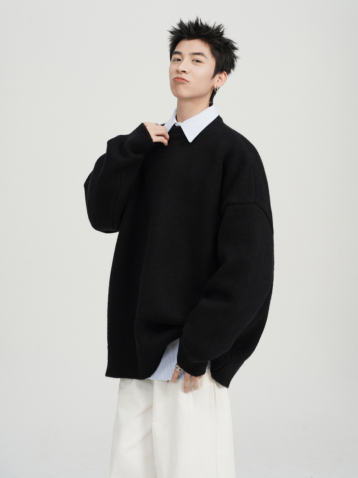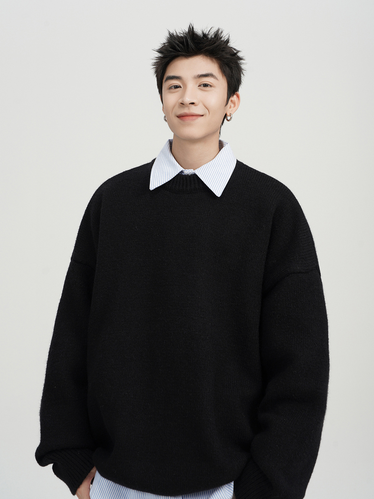 아메리칸 스타일 레트로 다크 브라운 크루 넥 스웨터 남자 가을 겨울 솔리드 컬러 올 매치 긴소매 캐주얼 게으른 풀오버 스웨터
