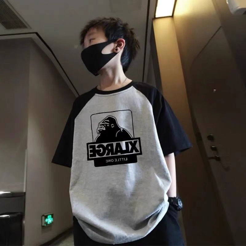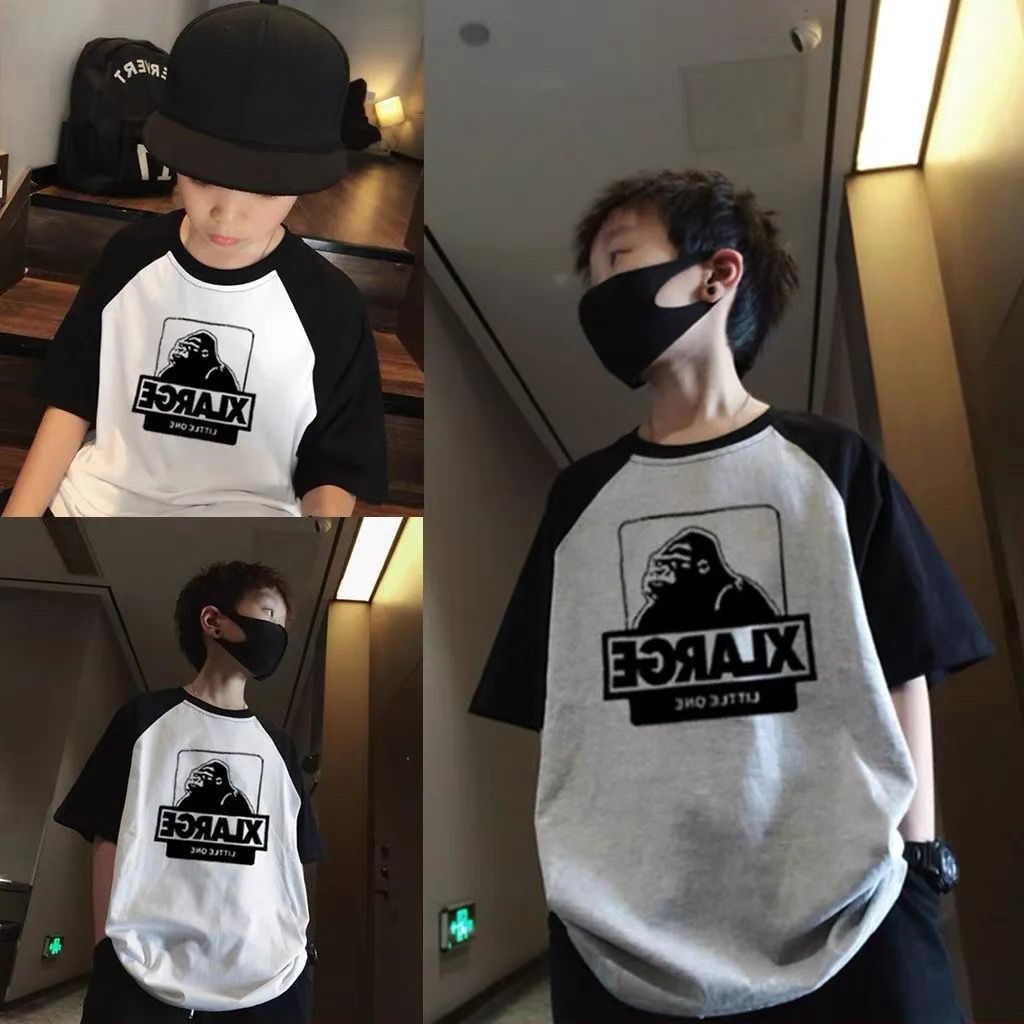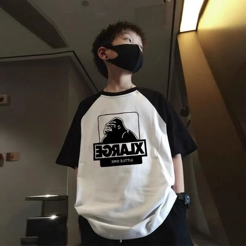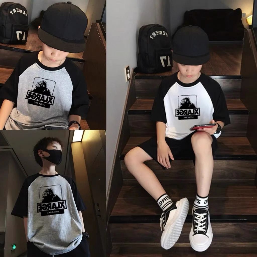 220 그램의 무거운면 큰 어린이 소년 반팔 대조 티셔츠 여름 2024 새로운 여름 잘 생긴