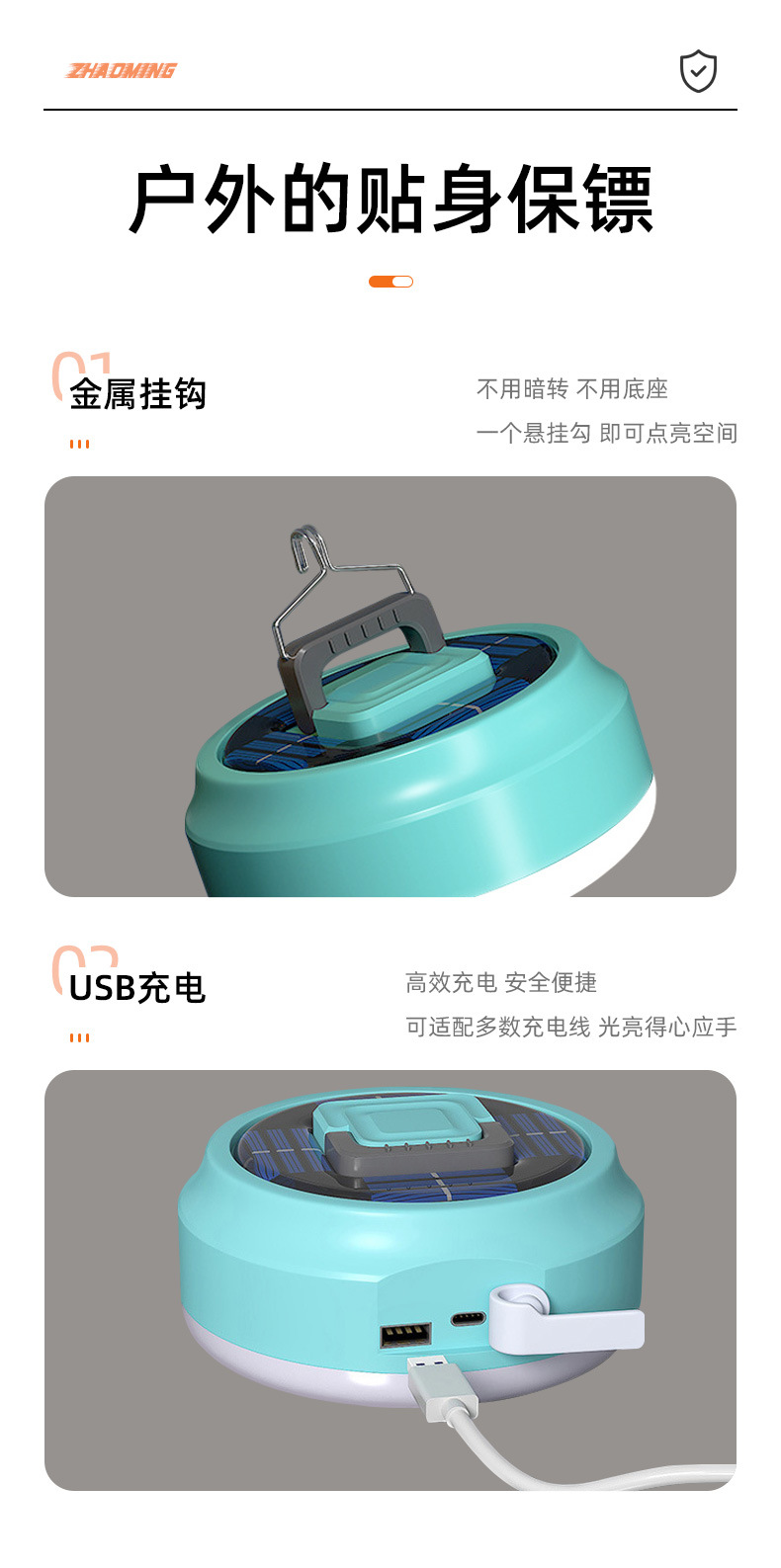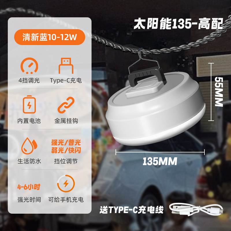 방수 야외 캠핑 라이트 휴대용 USB 충전 라이트 무선 충전 휴대 전화 Type-C