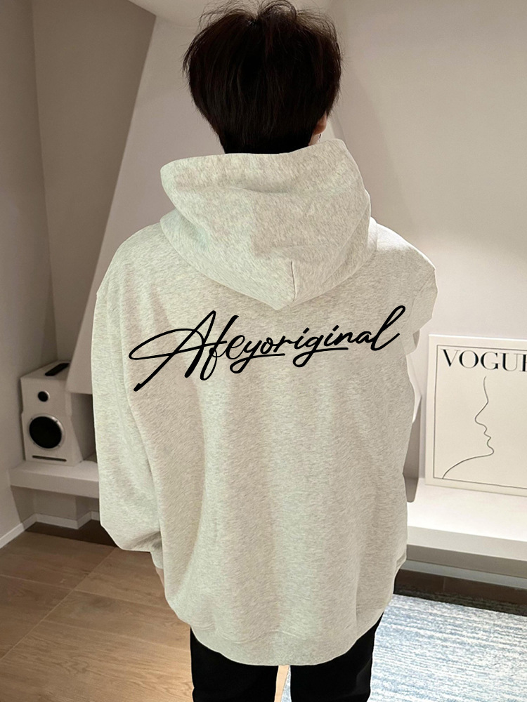 검은 색 편지 인쇄 무거운 스웨터 남성용 아메리칸 스타일 하이 스트리트 ootd 가을 및 겨울 코트 오버 사이즈 후드