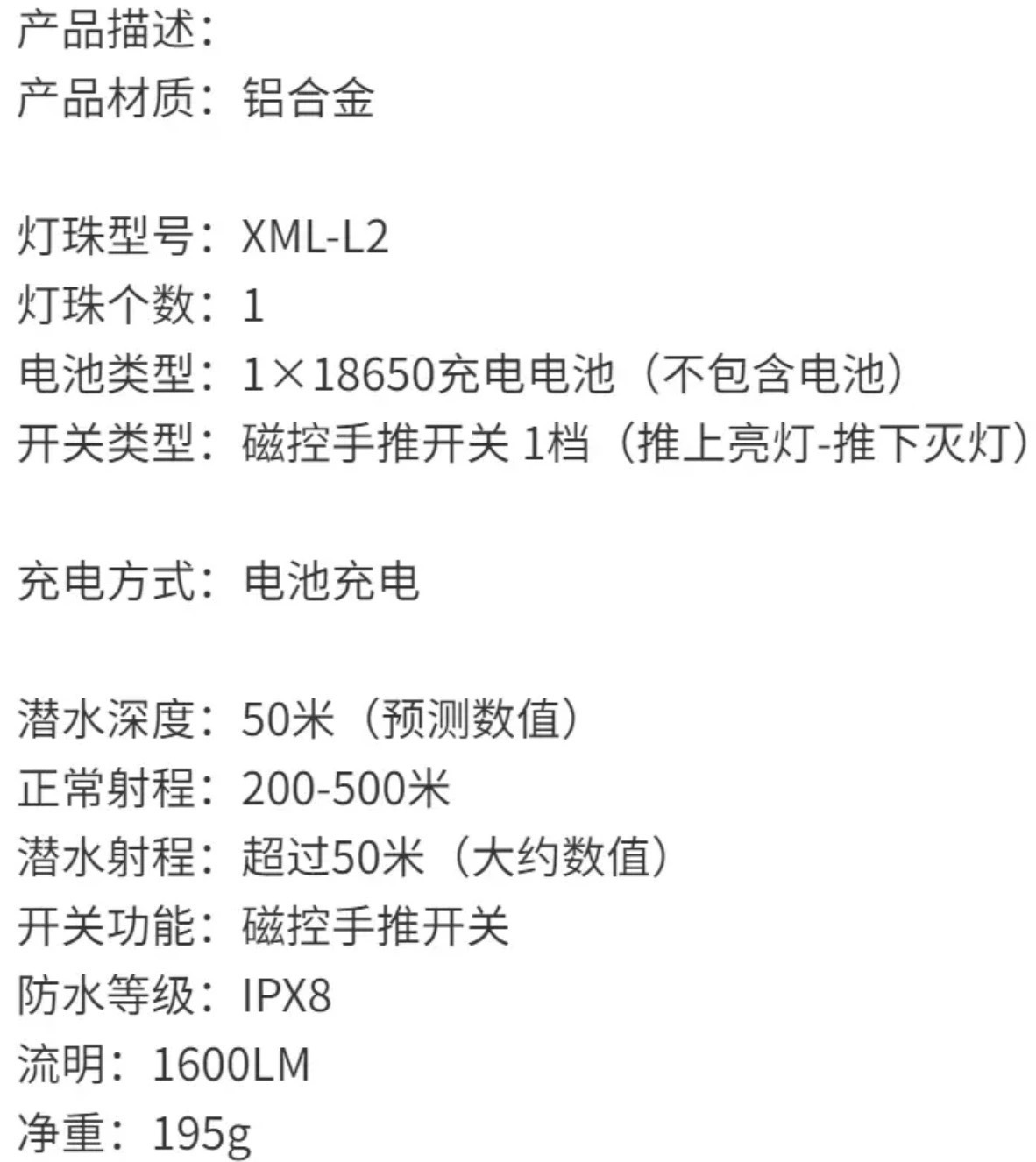 • L2 손전등 + 18650 1개 섹션 + USB 충전기