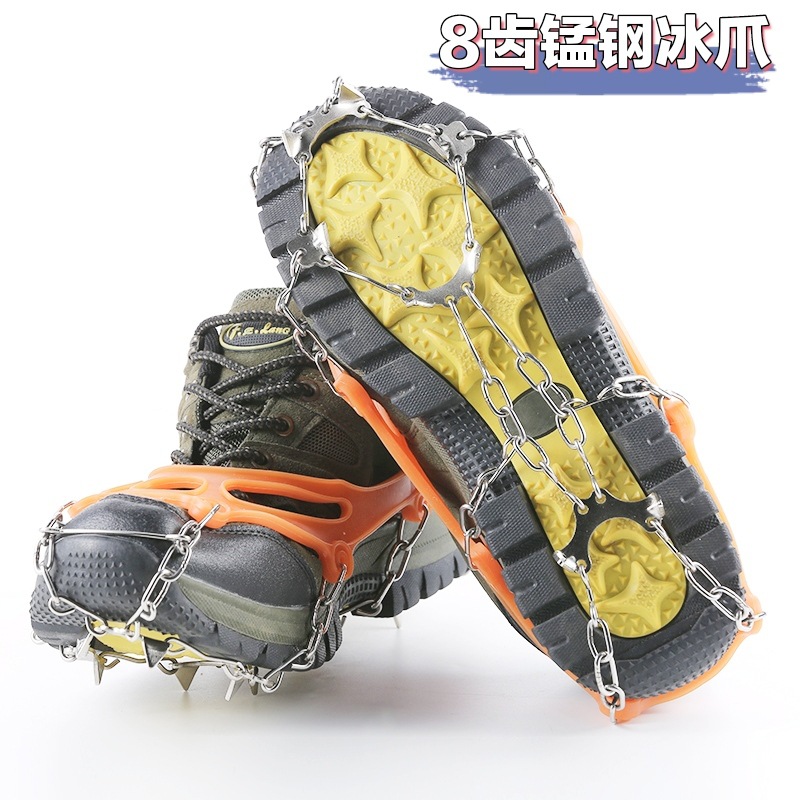 一款简便的适合于北方多雨雪泥泞地区使用的登山鞋防滑链,也可以一定的雪地及冰面使用。让你雨雪天登山溯溪时无忧。本产品主要由TPE和锰钢齿组成。TPE具有良好的弹性韧性及抗老化性。锰钢爪经过热处理工艺,不易变形,更坚固。