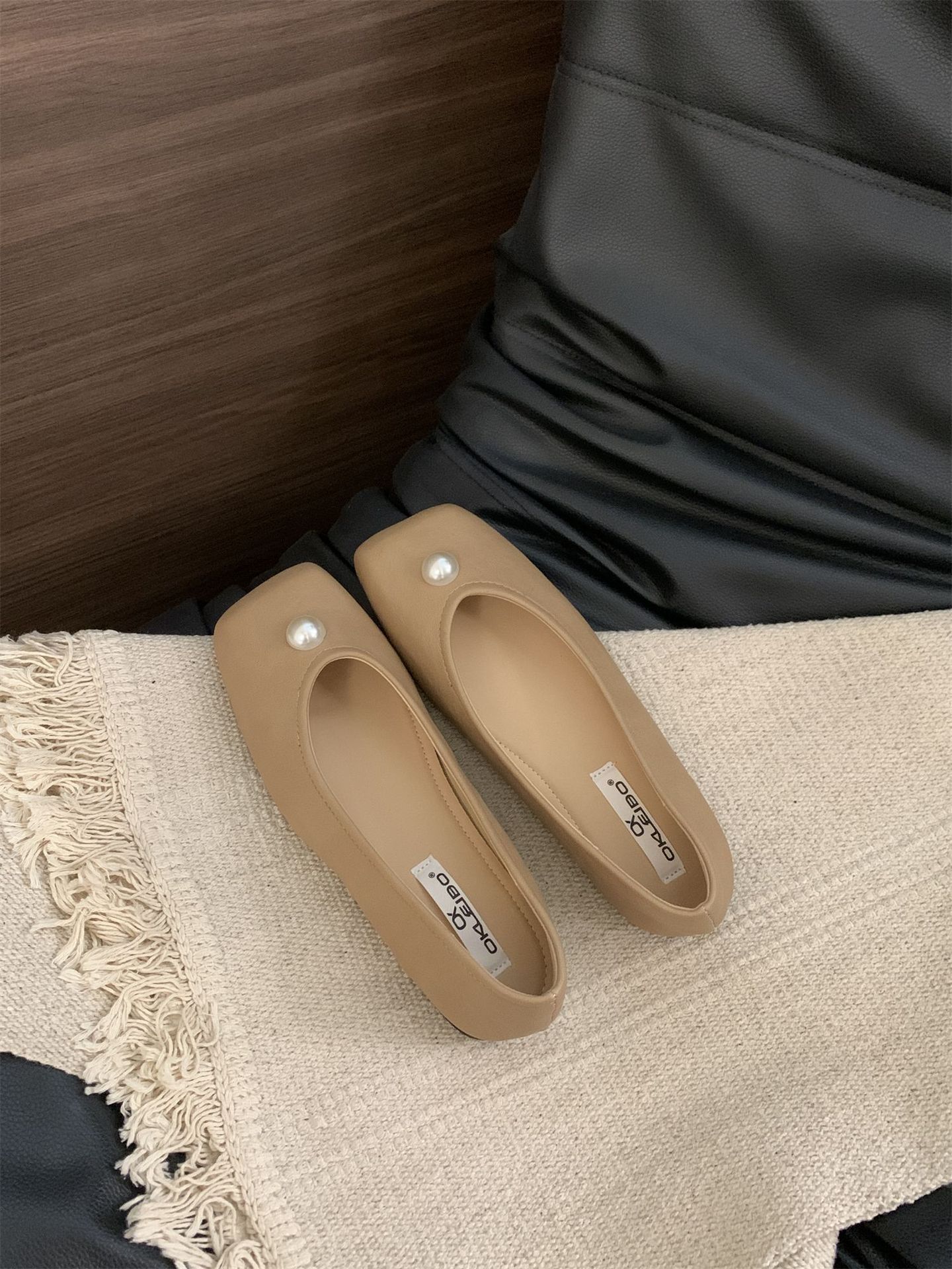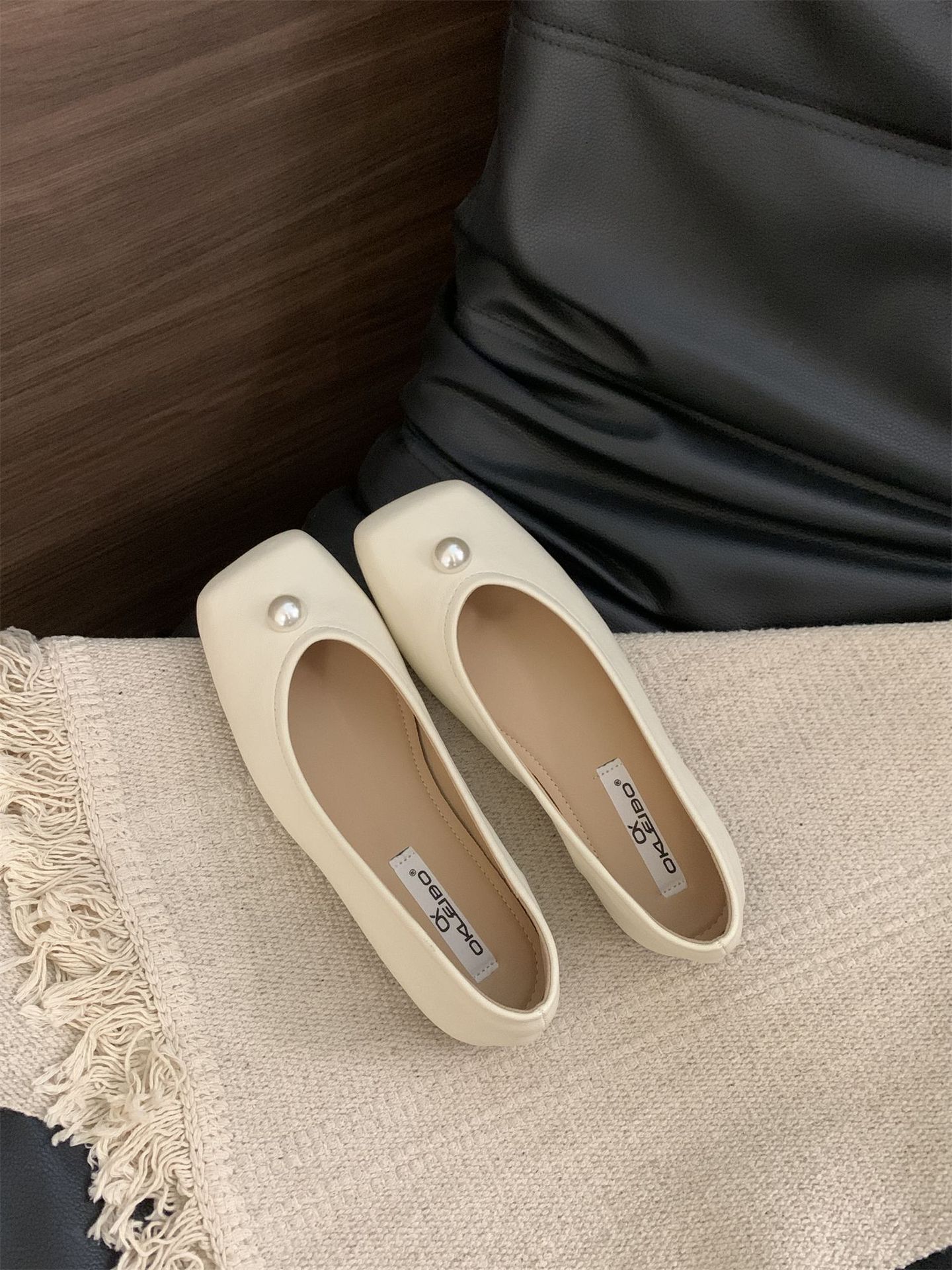 평평한 진주 광장 머리 실버 신발 여성 2025 봄 새 우유 신발 슬립 온 작업 신발