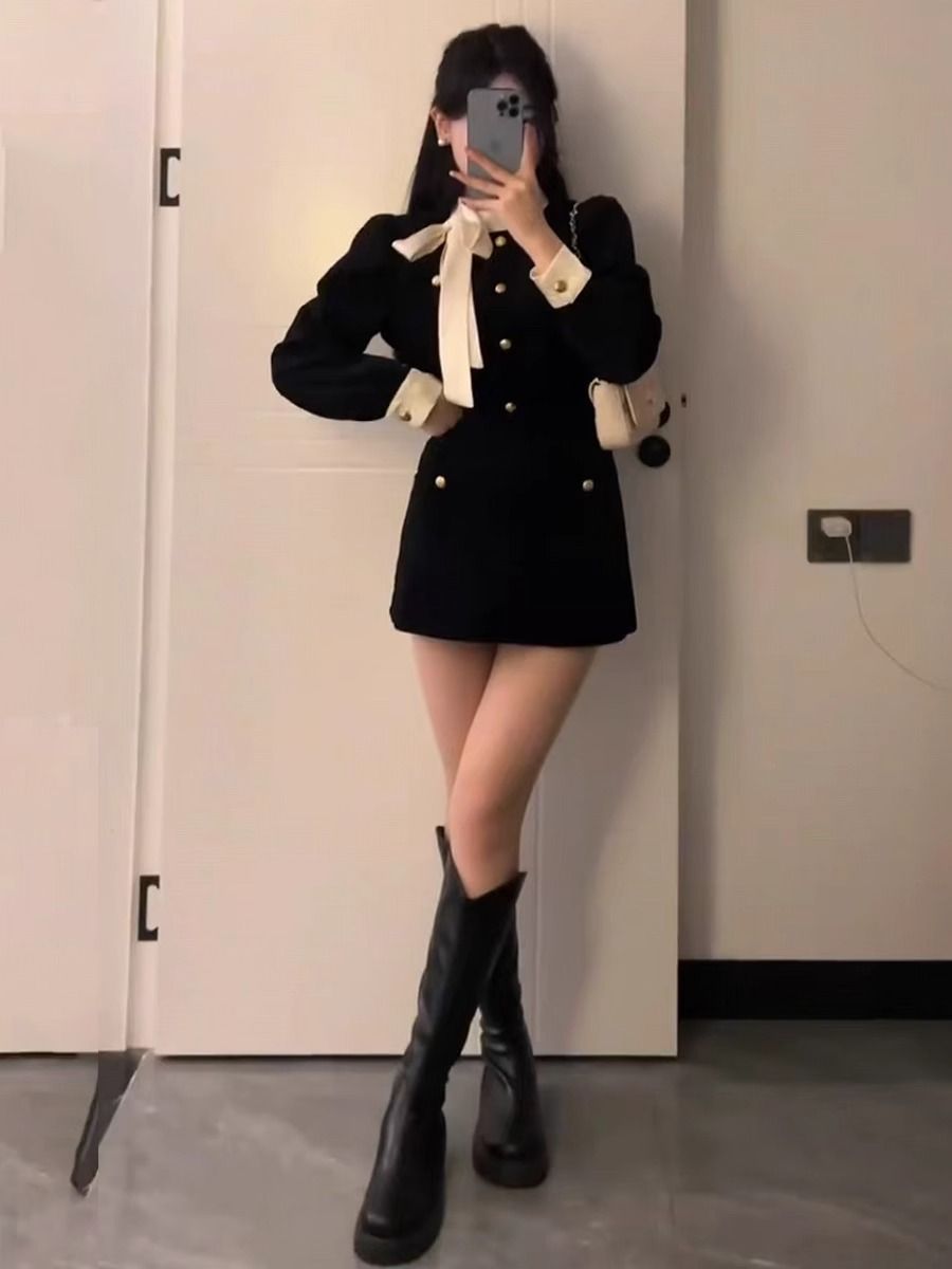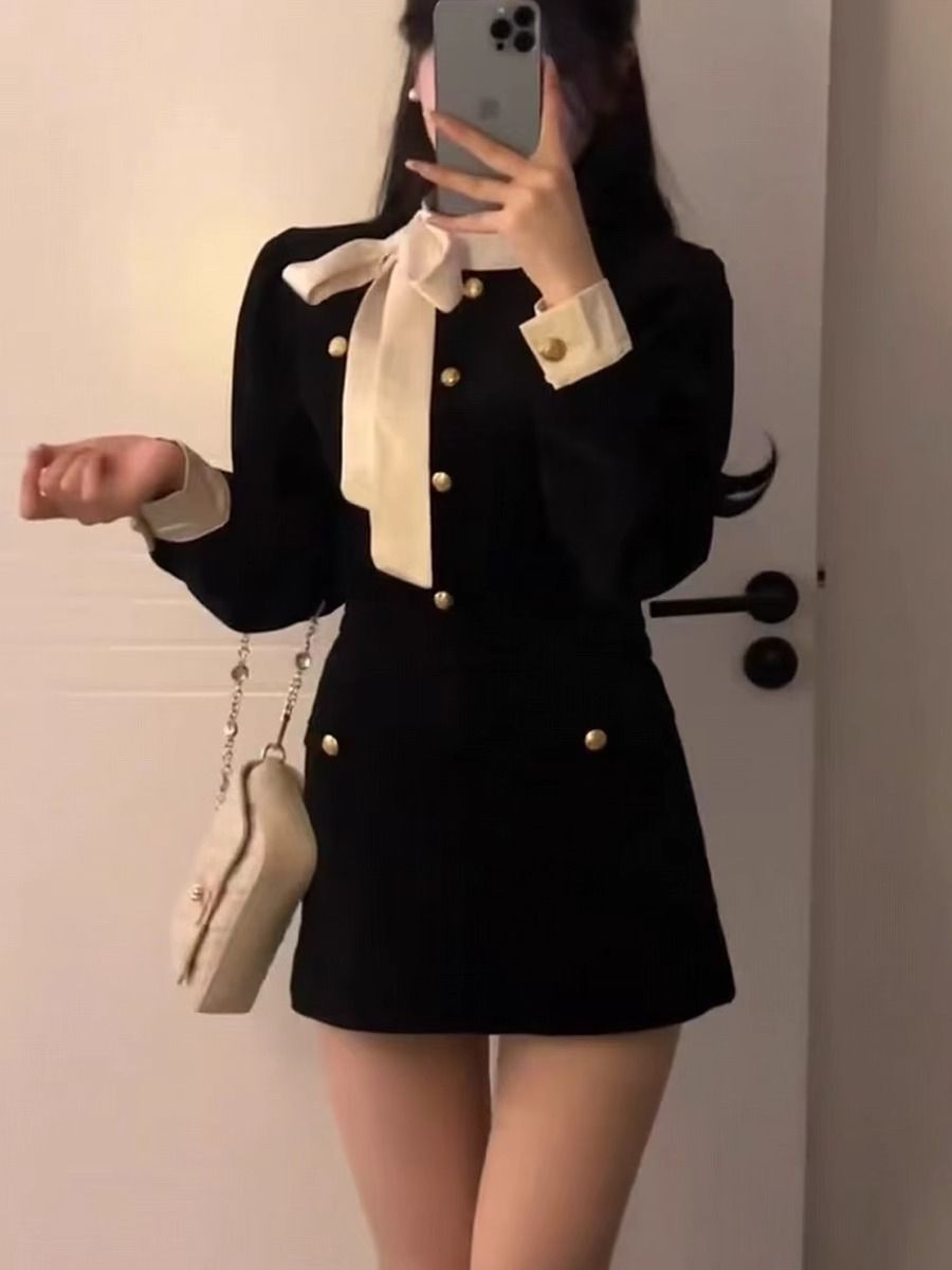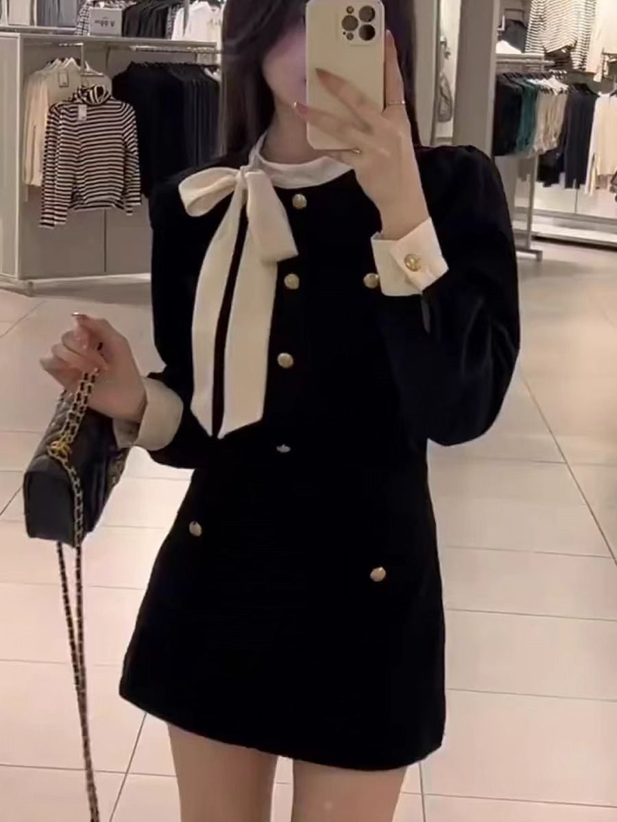 풍부한 가족 딸 스타일 하이 엔드 기질 활 긴 소매 최고의 여성 가을과 겨울 새로운 스커트 작은 향기로운 스타일 세트스토어 가기