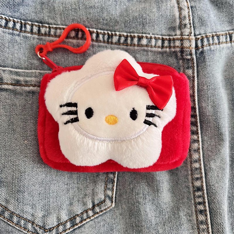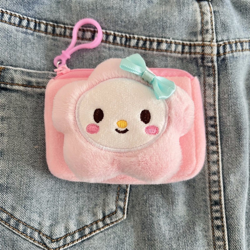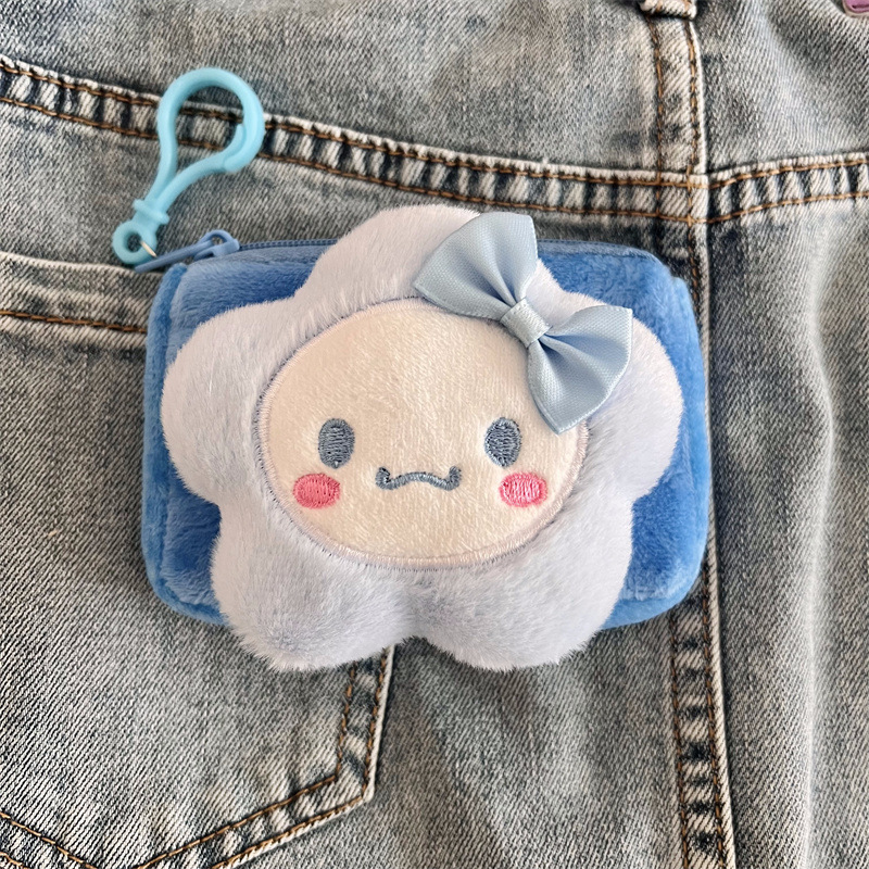 Yunduo Sanrio 사각형 플러시 동전 지갑 휴대용 학생 ID 카드 홀더 여성용 가방에 걸 수 있는 미니 가방