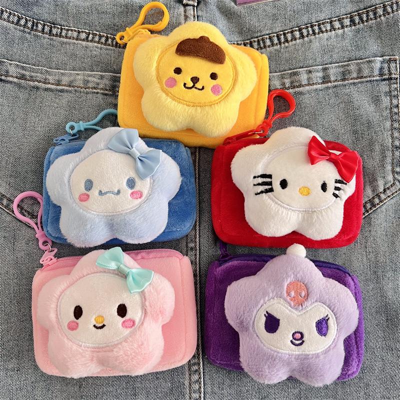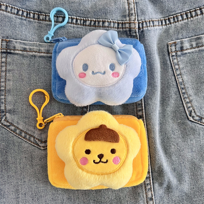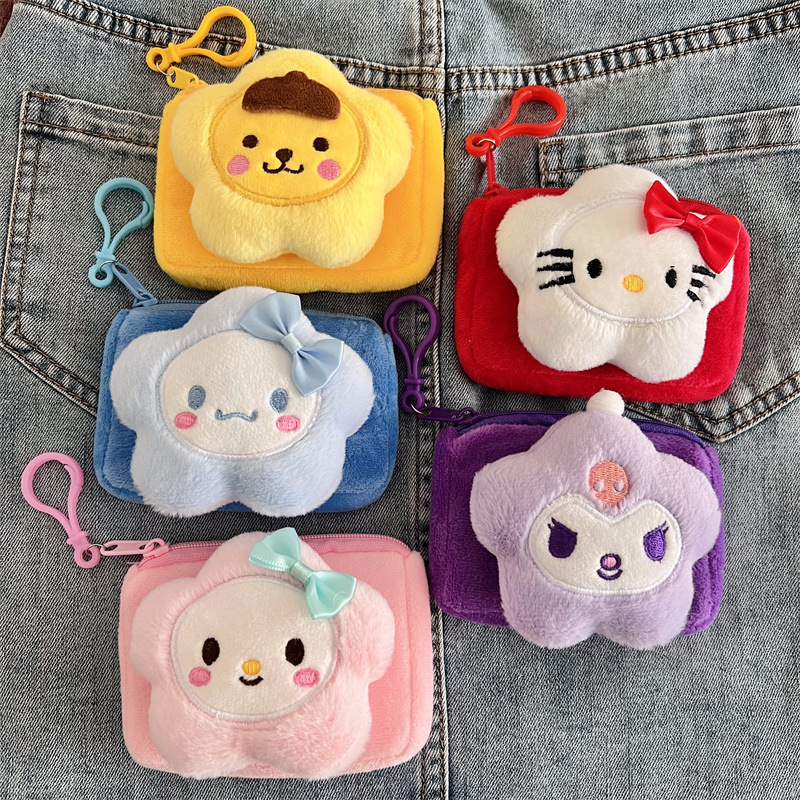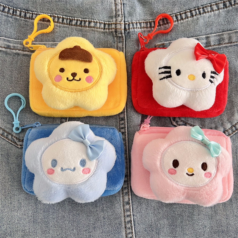 Yunduo Sanrio 사각형 플러시 동전 지갑 휴대용 학생 ID 카드 홀더 여성용 가방에 걸 수 있는 미니 가방스토어 가기