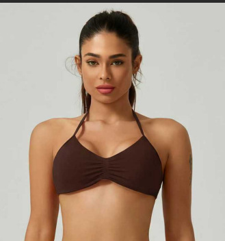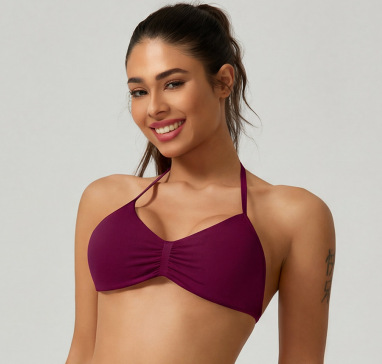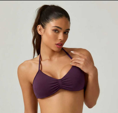 2025 봄 여름 신제품 DF 플랫 홀터넥 백리스 섹시한 올인원 고탄력 심리스 요가웨어 여성용 스포츠 브라