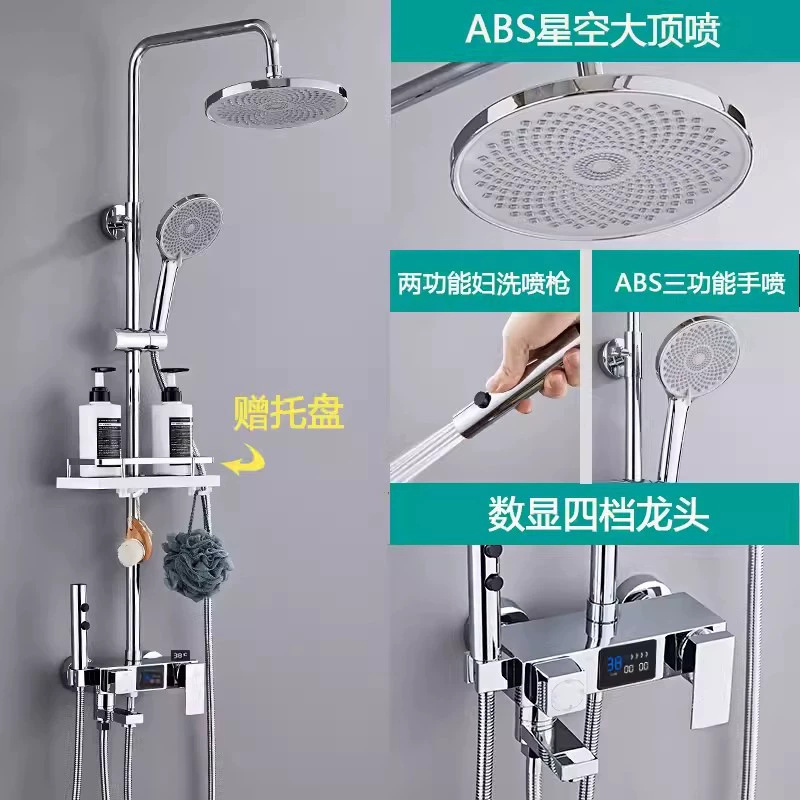 • E1 냉온수 디지털 디스플레이 4단 원형 튜브 + ABS 별이 빛나는 하늘 노즐