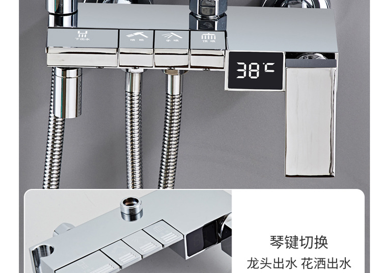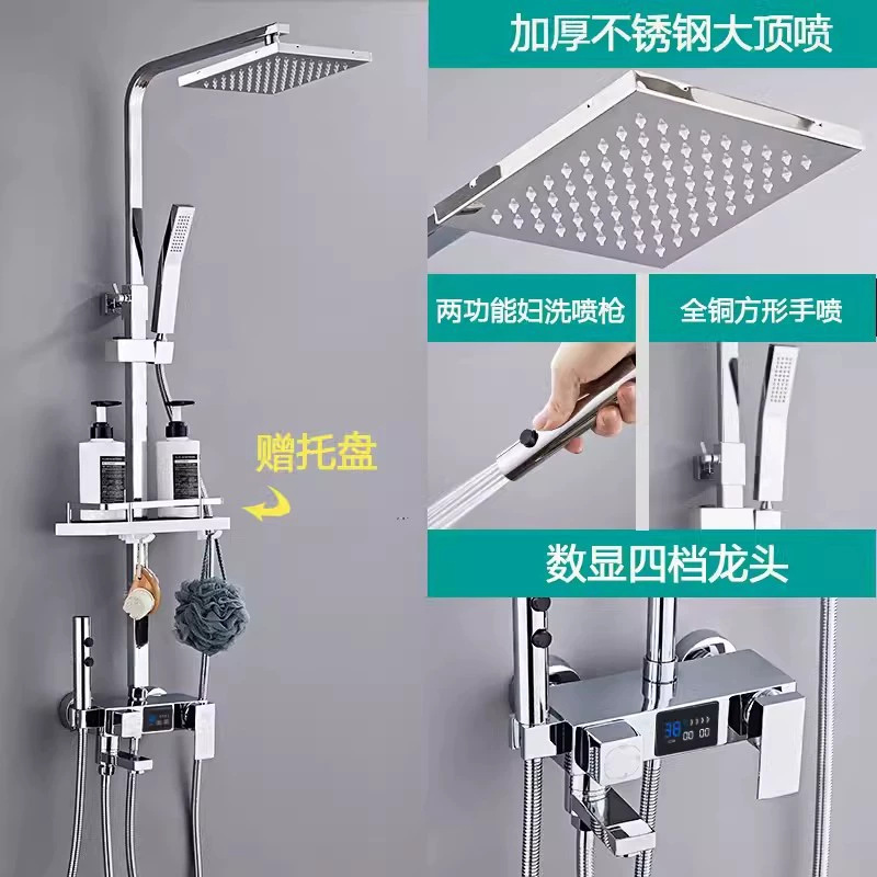 • E2 모델 냉온수 디지털 디스플레이 4단 사각 튜브 + 구리 핸드 스프레이
