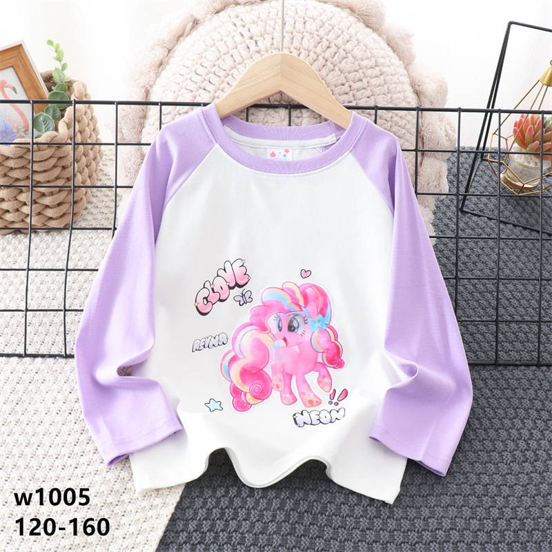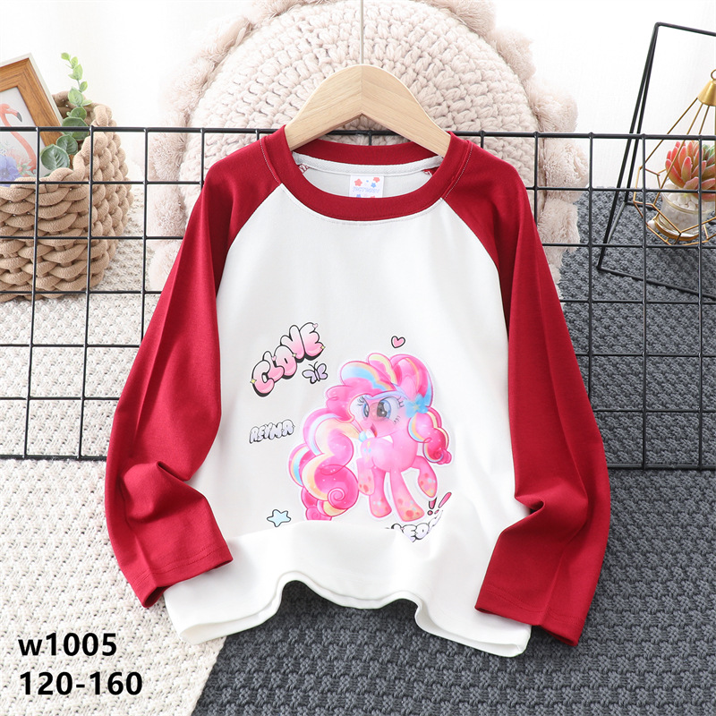 여자 스웨터 봄 조랑말베이스 셔츠 2025 새로운 라운드 넥 긴 소매 어린이 외부 착용 올매치 캐주얼 탑스토어 가기