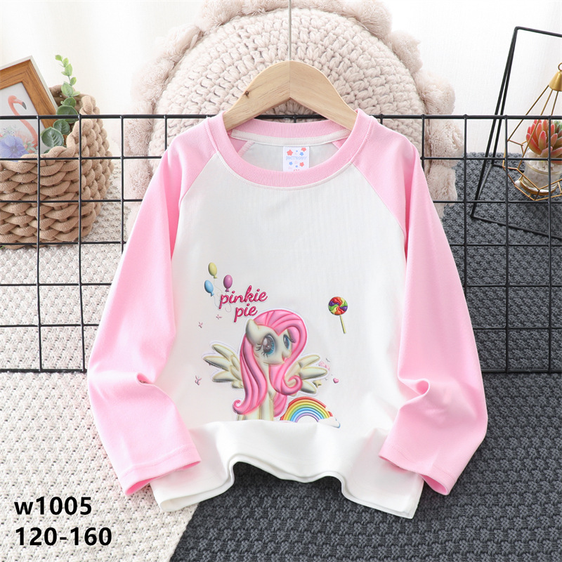 여자 스웨터 봄 조랑말베이스 셔츠 2025 새로운 라운드 넥 긴 소매 어린이 외부 착용 올매치 캐주얼 탑