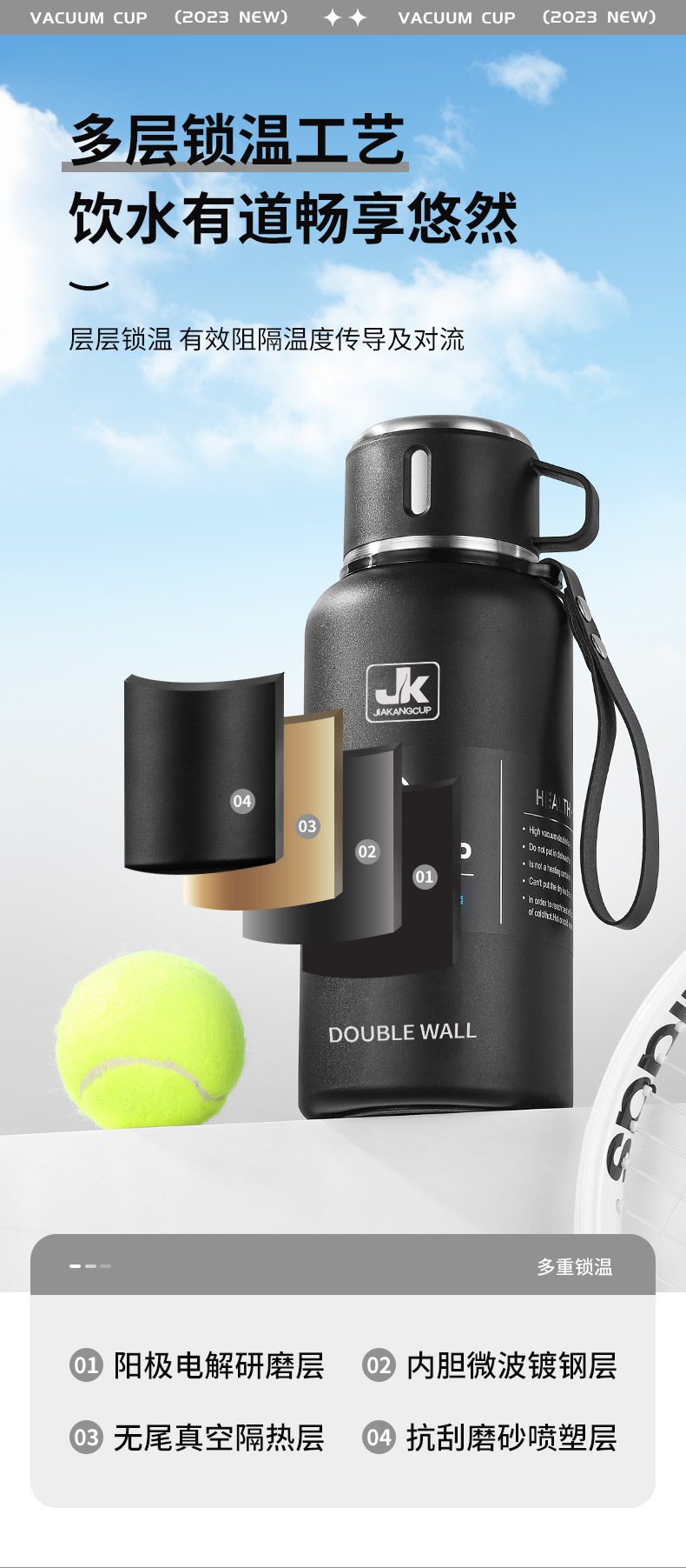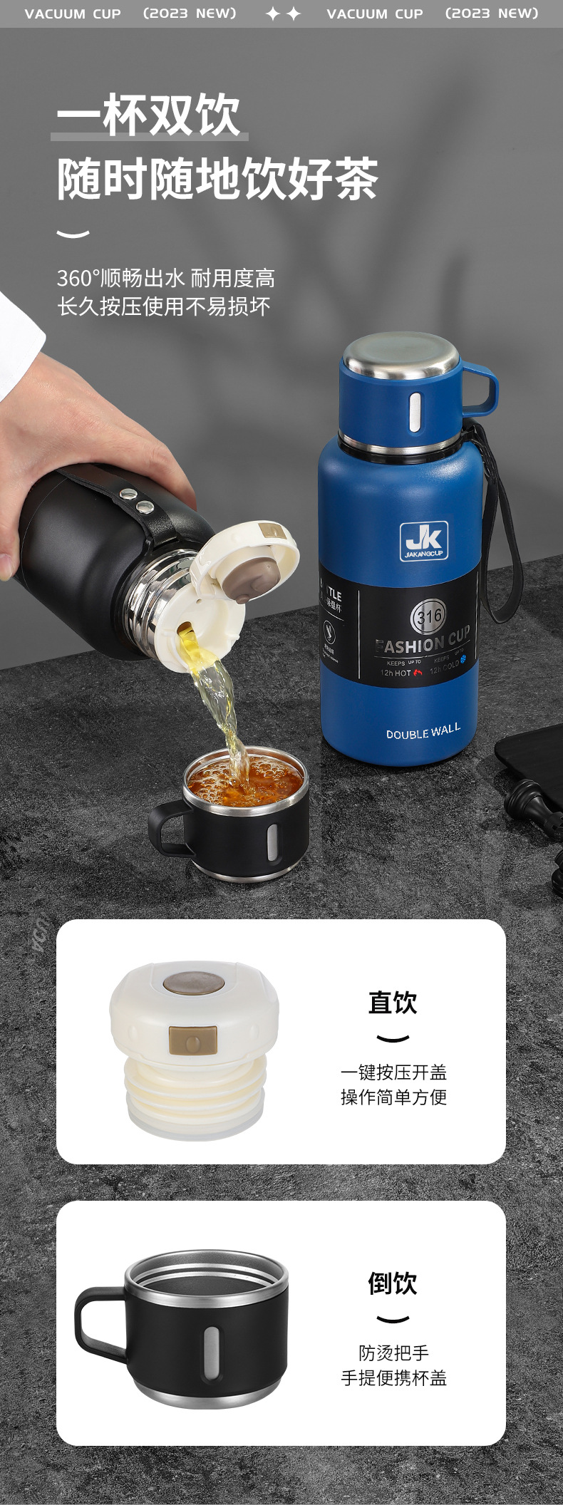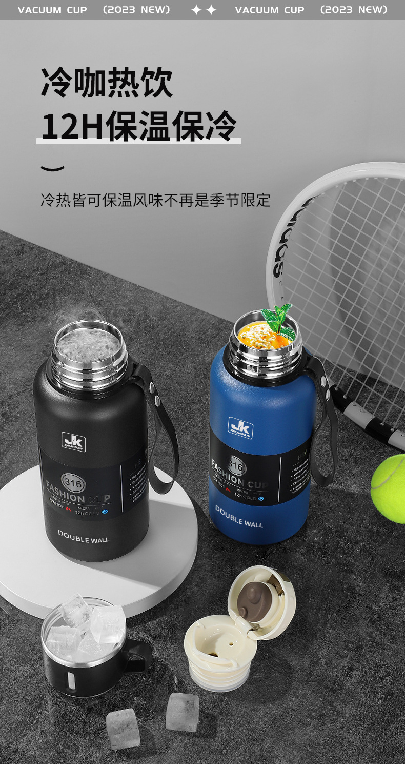 맞춤형 316 스테인리스 스틸 물병 차량용 등산 여행 보온병 진공 자전거용 물병 손잡이 포함 야외용스토어 가기