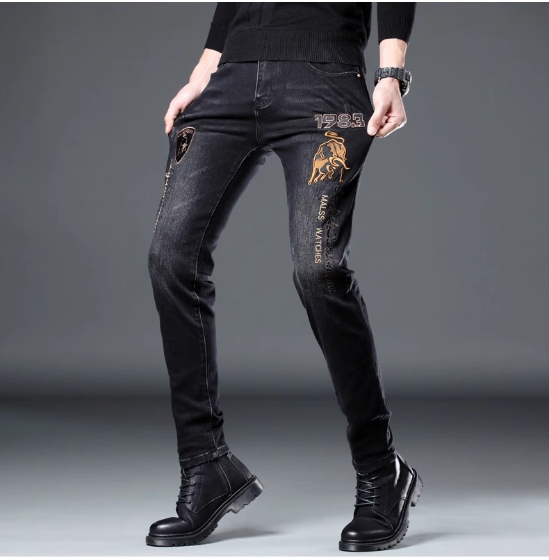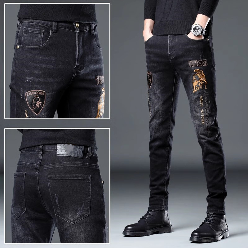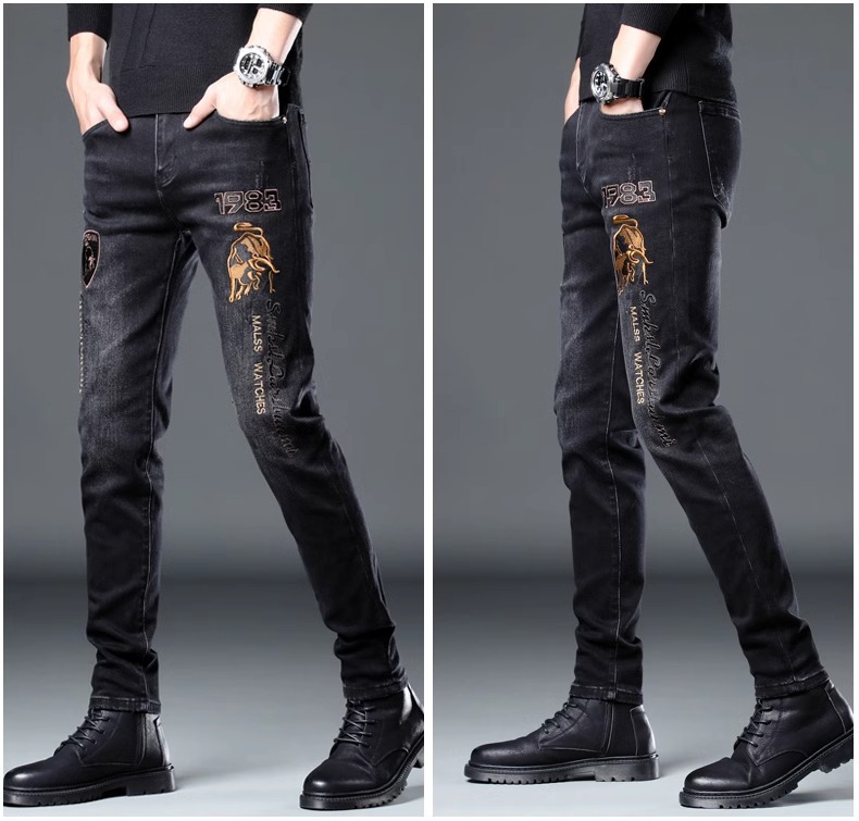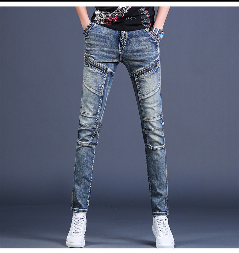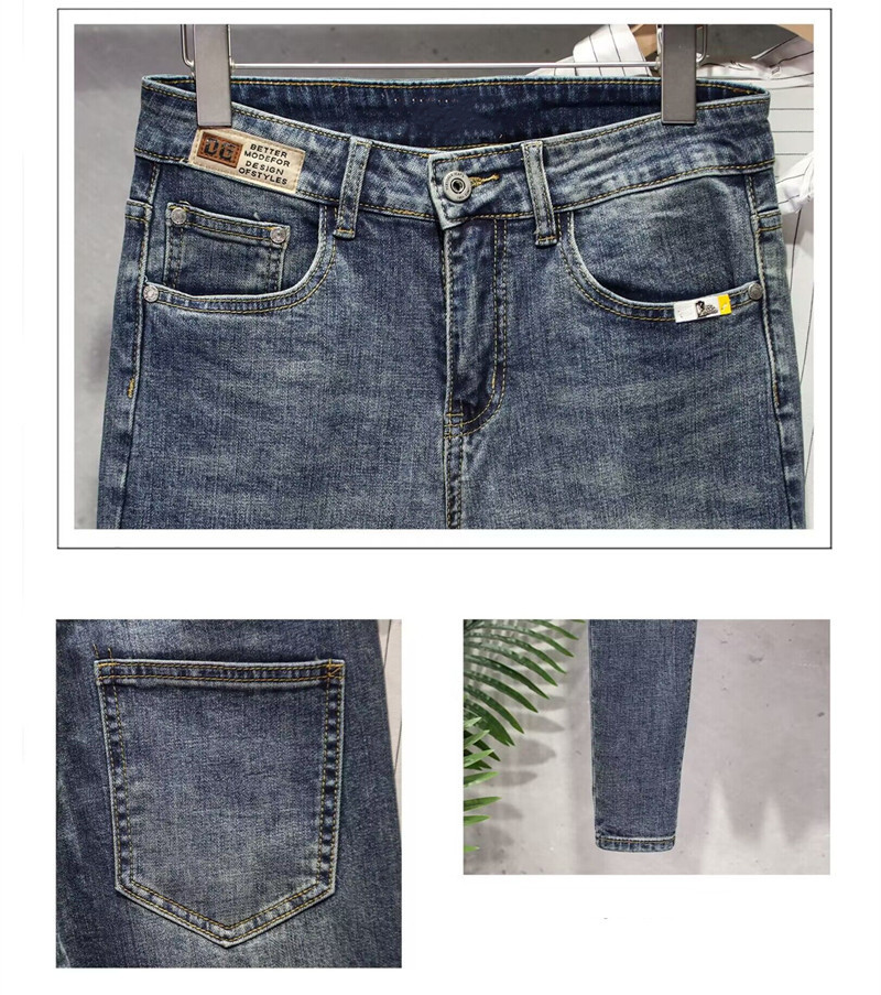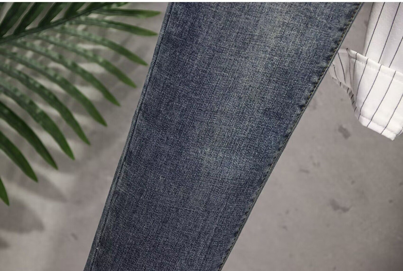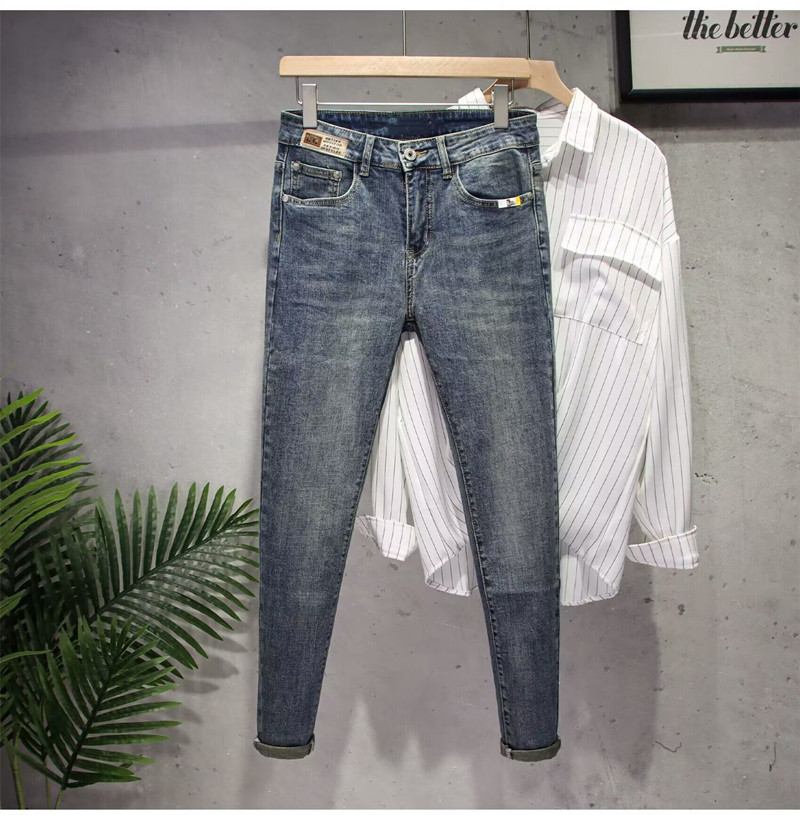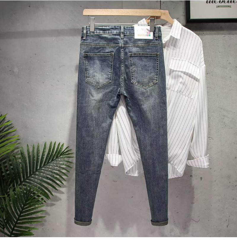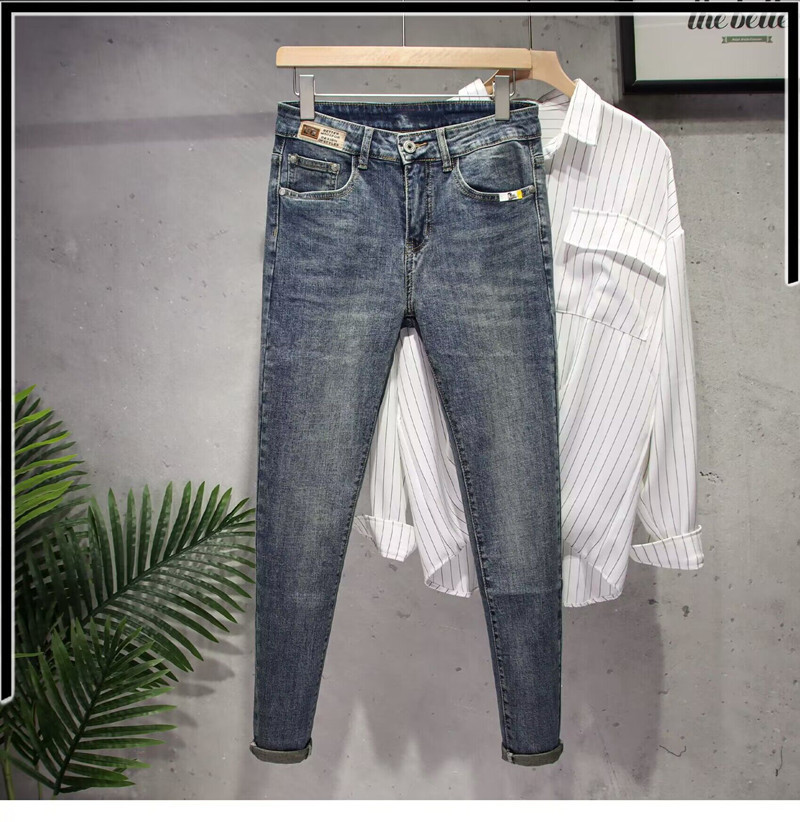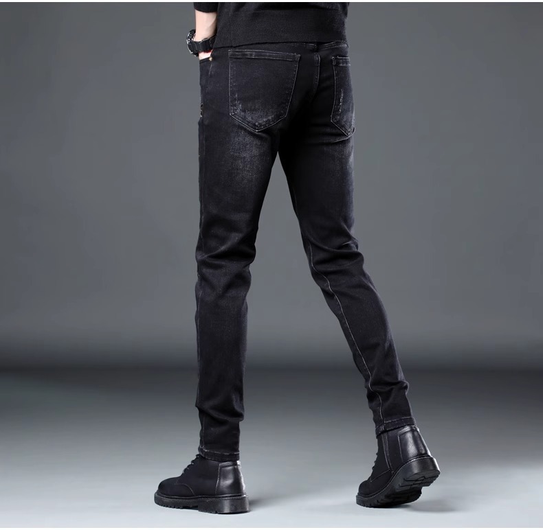 가을과 겨울 새로운 슬림 핏 스트레치 청바지 남성용 트렌디 한 영적 남성 캐주얼 바지 올 매치 리핑 청소년 레깅스스토어 가기