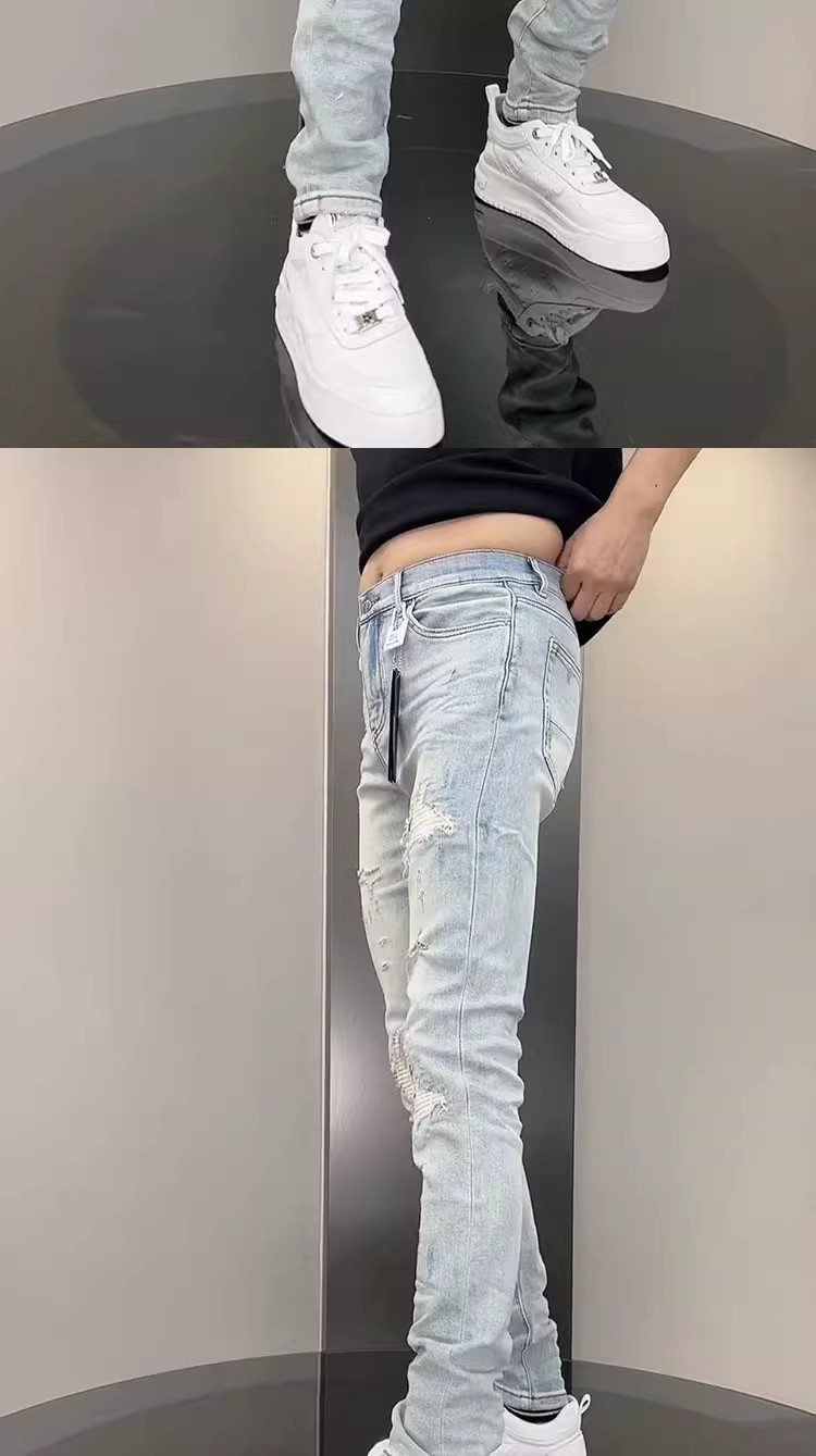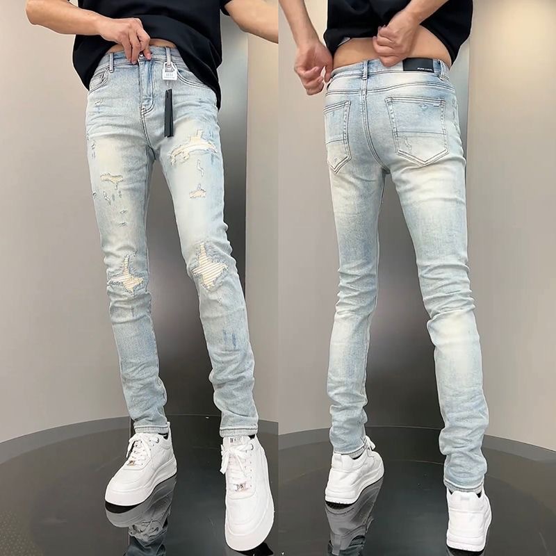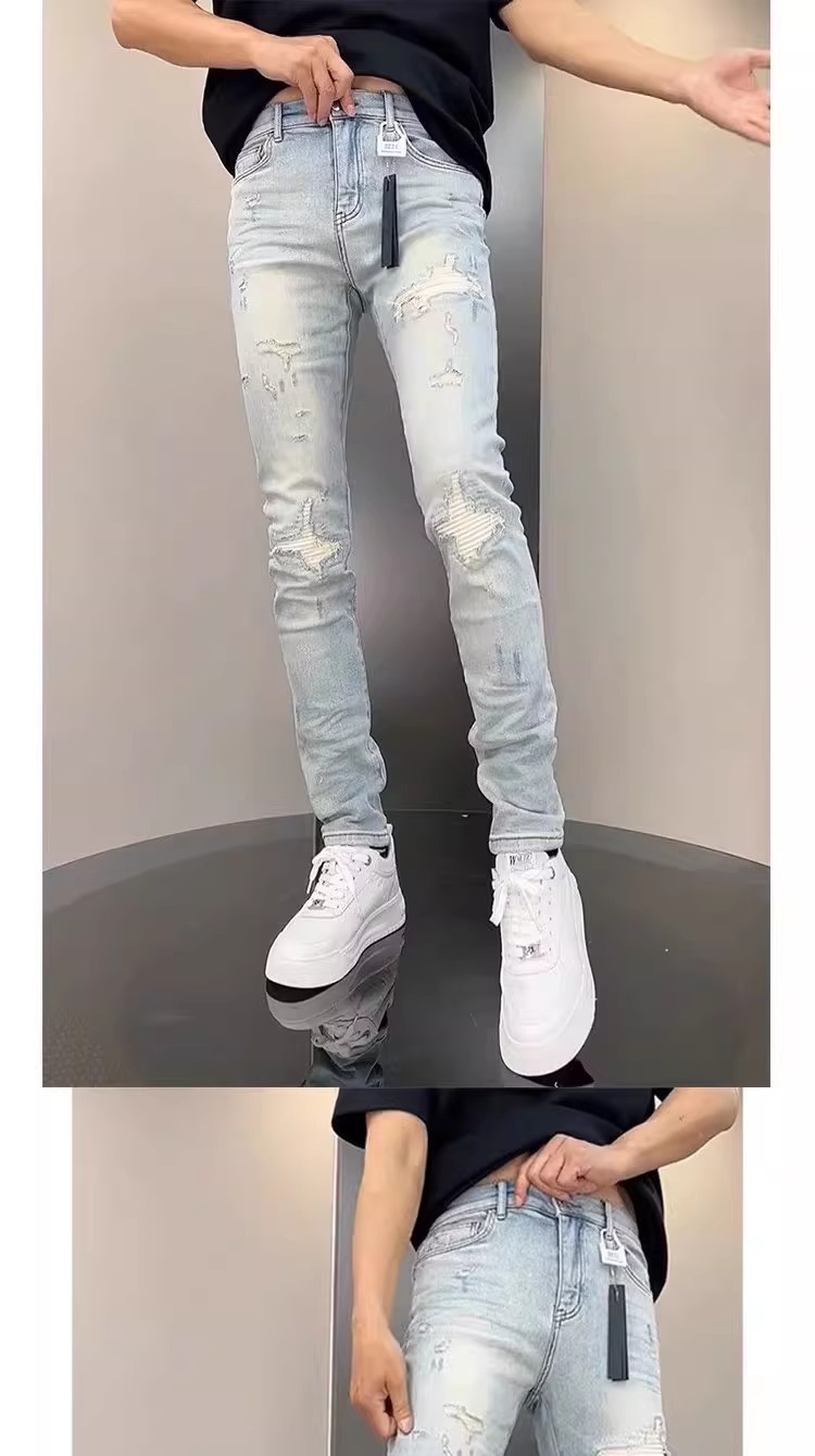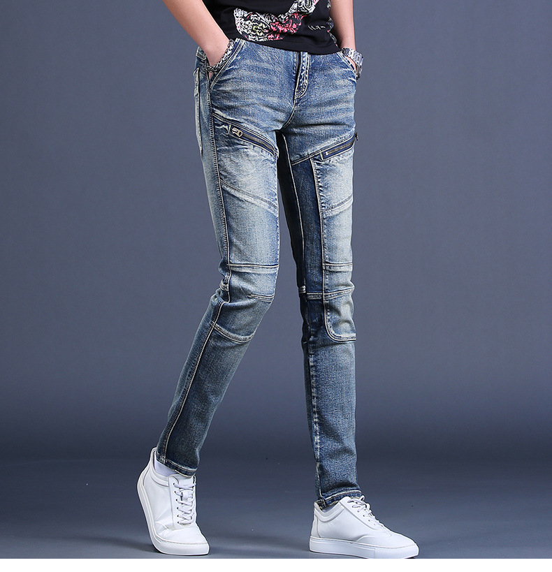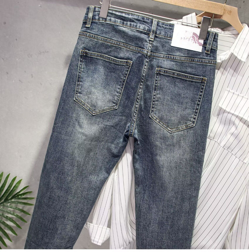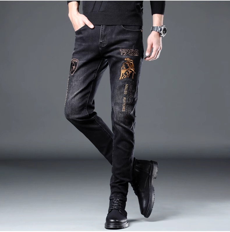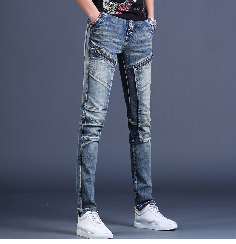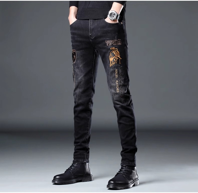 가을과 겨울 새로운 슬림 핏 스트레치 청바지 남성용 트렌디 한 영적 남성 캐주얼 바지 올 매치 리핑 청소년 레깅스스토어 가기
