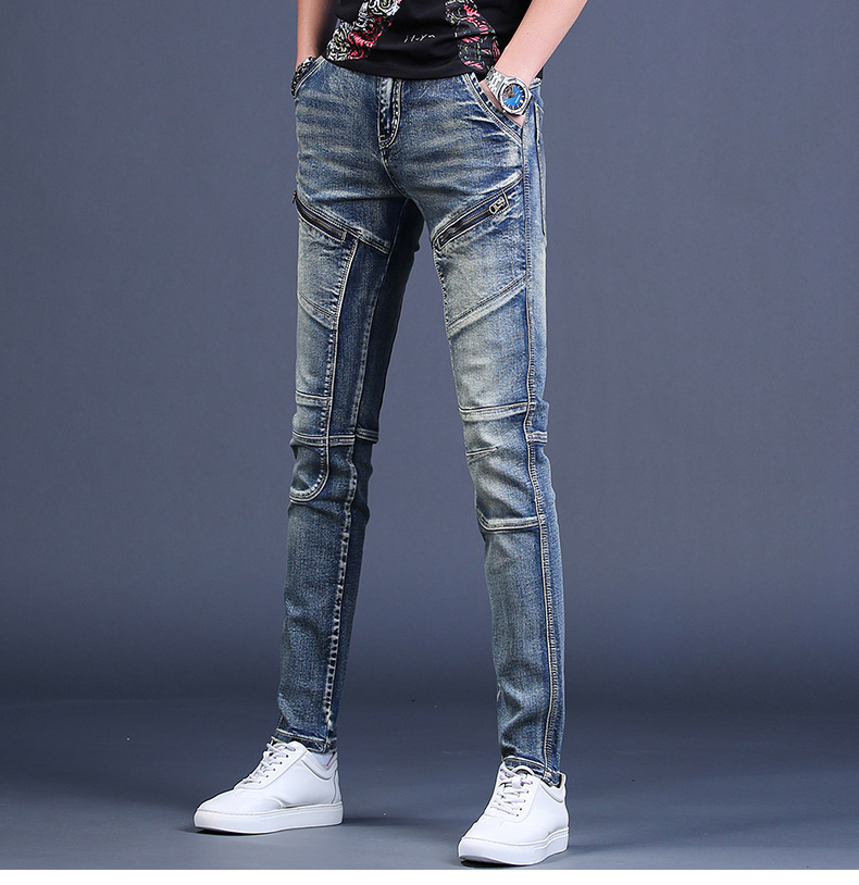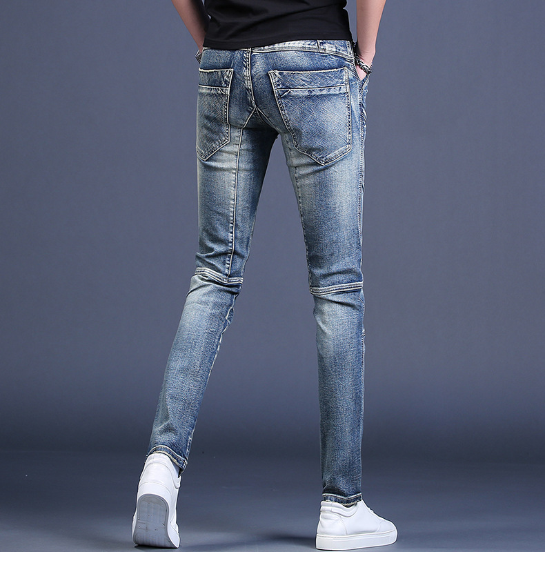 가을과 겨울 새로운 슬림 핏 스트레치 청바지 남성용 트렌디 한 영적 남성 캐주얼 바지 올 매치 리핑 청소년 레깅스