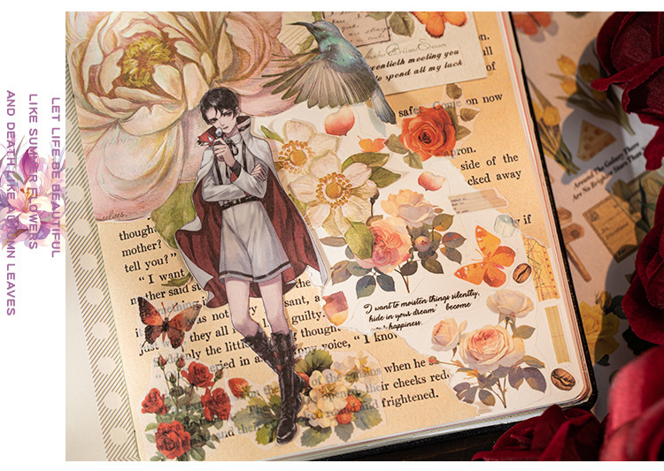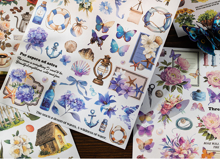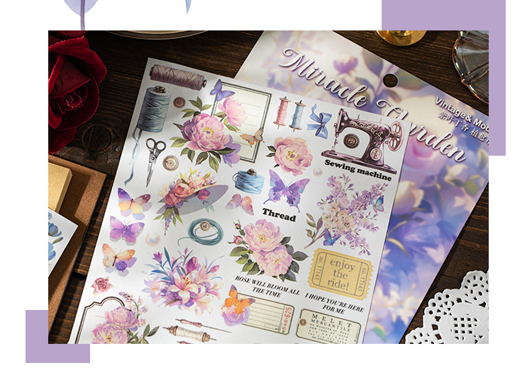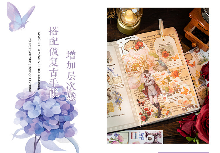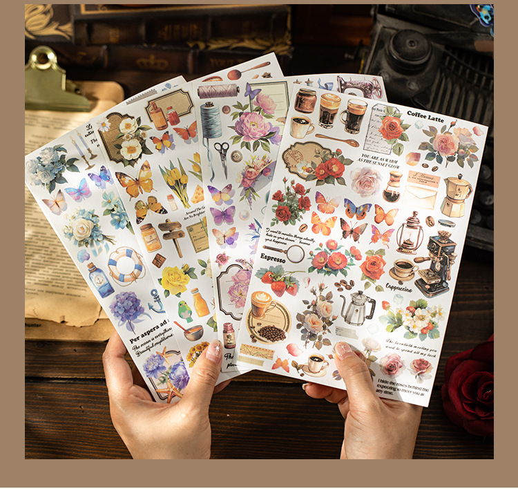 더 많은 시장 시리즈 복고풍 꽃 나비 소재 손 계정 DIY 조경 스티커를 심는 언어 레저 대형 및 종이 스티커