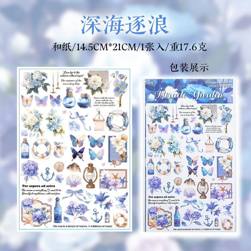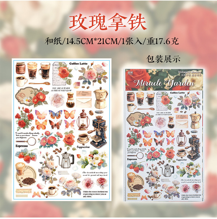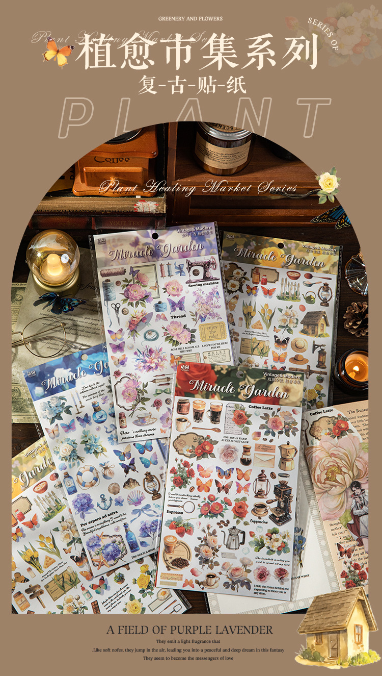 더 많은 시장 시리즈 복고풍 꽃 나비 소재 손 계정 DIY 조경 스티커를 심는 언어 레저 대형 및 종이 스티커스토어 가기