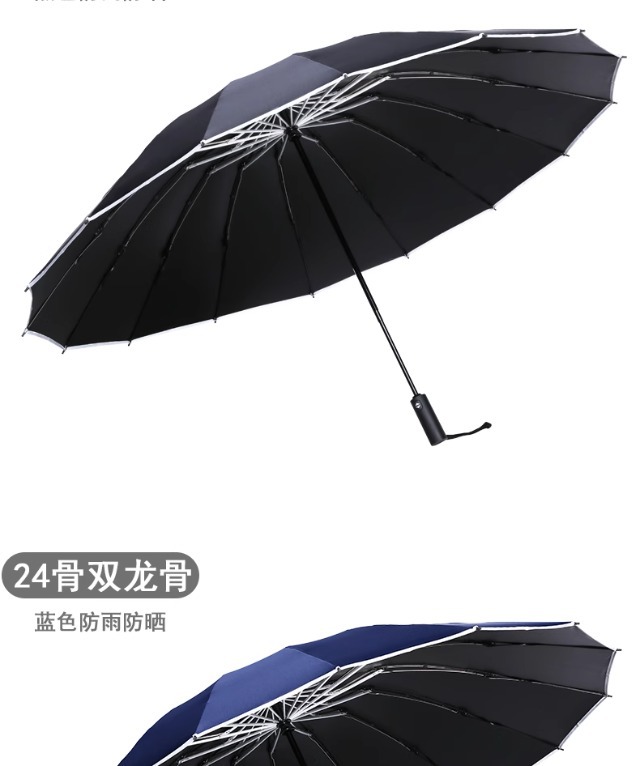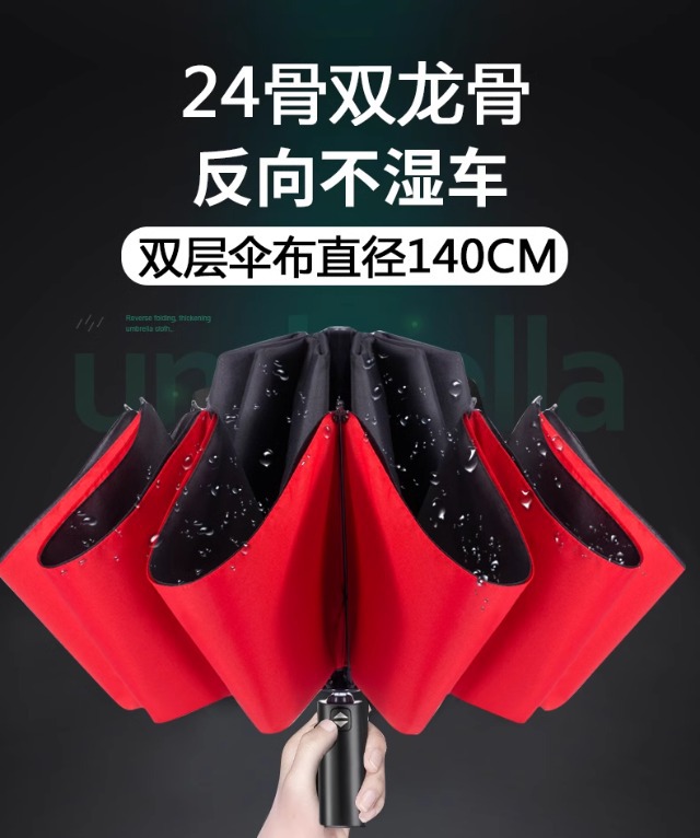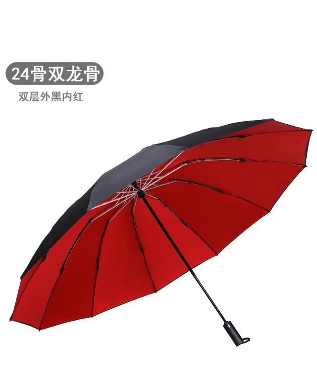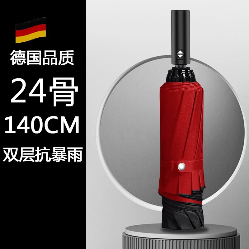 완전 자동 맑음 우산 남자 초대형 24-뼈 더블레이어 리버스 우산 여성의 3 접기 강화 안티 스톰 스페셜