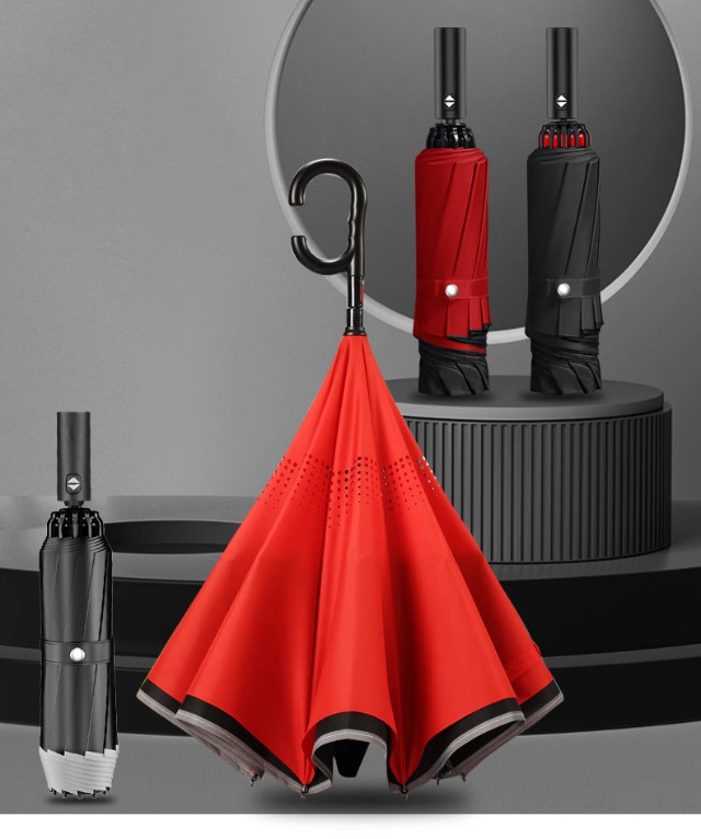 완전 자동 맑음 우산 남자 초대형 24-뼈 더블레이어 리버스 우산 여성의 3 접기 강화 안티 스톰 스페셜스토어 가기