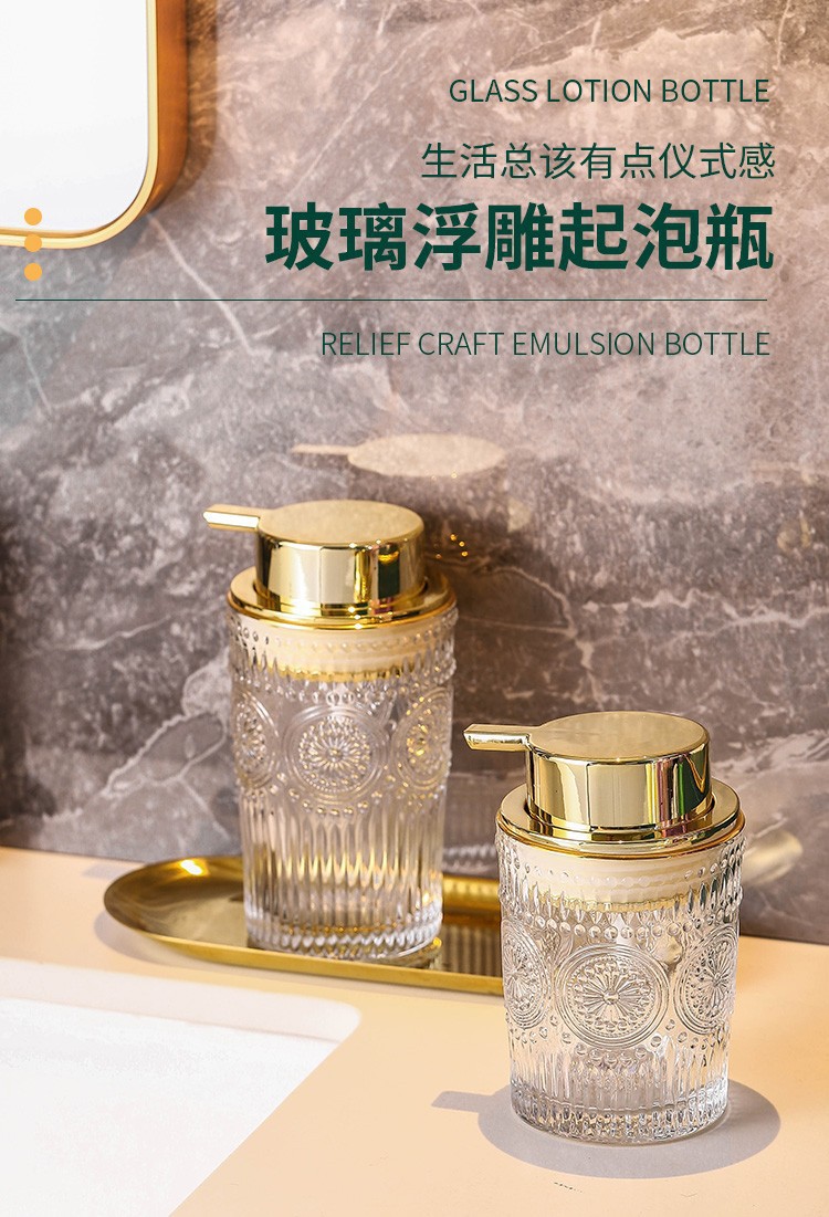 라이트 럭셔리 크리스탈 욕실 세면도구 세트 구강 세정컵 세트 도매 엠보싱 손세정제 병 투명 유리 프레스형