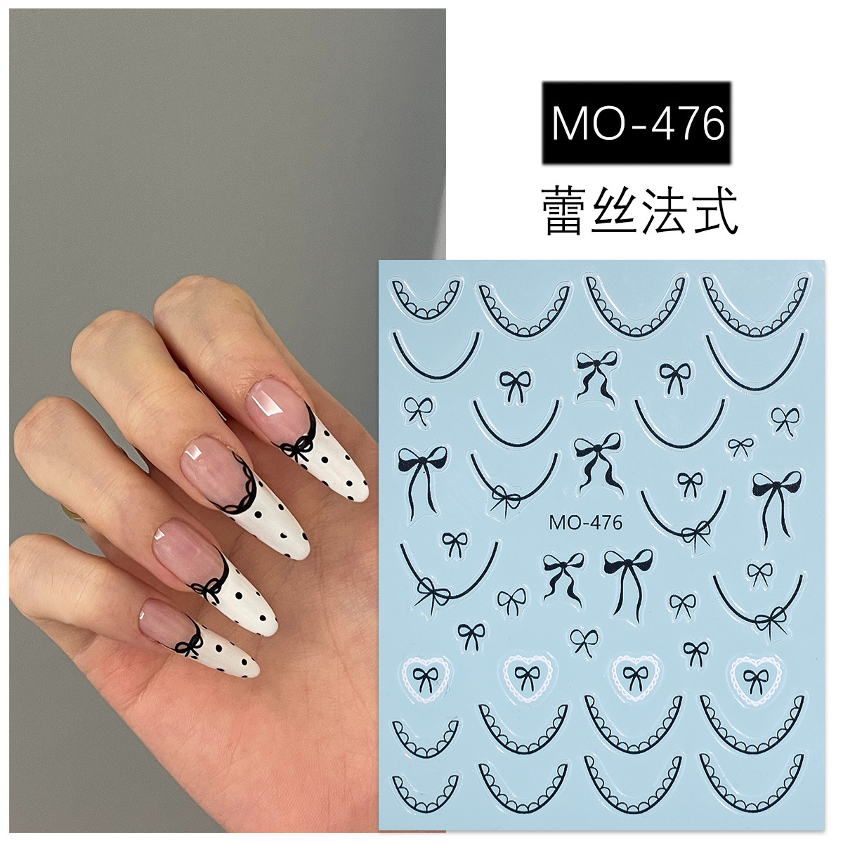 레이스 프렌치 네일 아트 스티커 2025 새로운 발레 스타일 흑백 레드 보우 네일 스티커 인터넷 축하 폭발스토어 가기