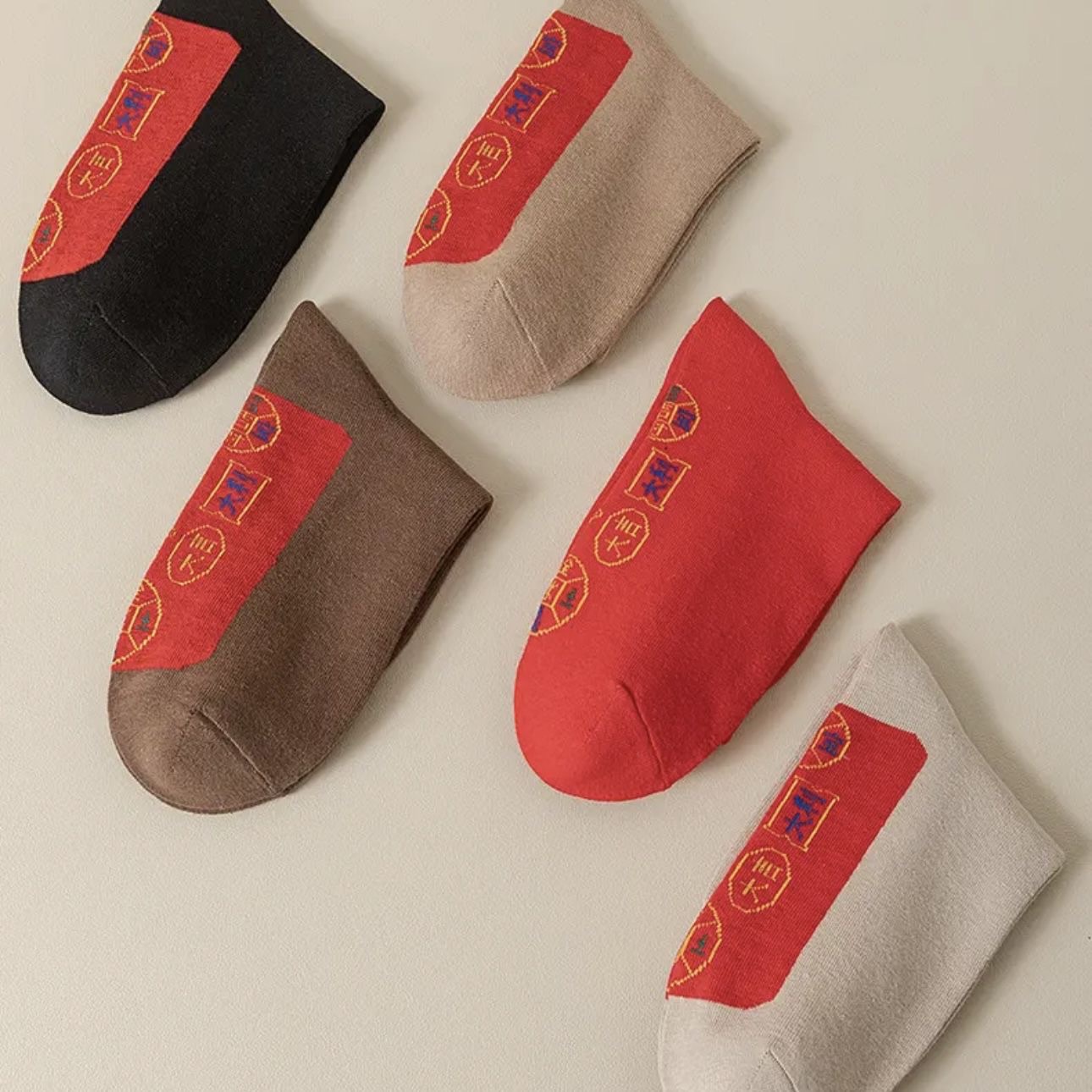 풋 세븐 스타 양말 통기성 땀 흡수 새해 붉은 양말 남녀스토어 가기