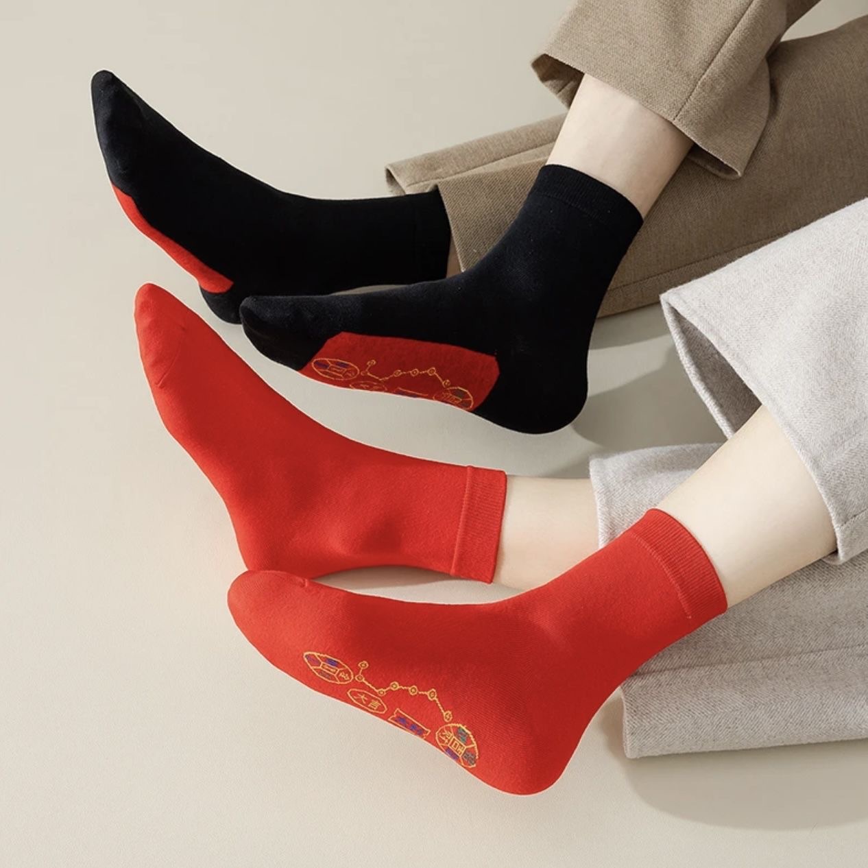 풋 세븐 스타 양말 통기성 땀 흡수 새해 붉은 양말 남녀