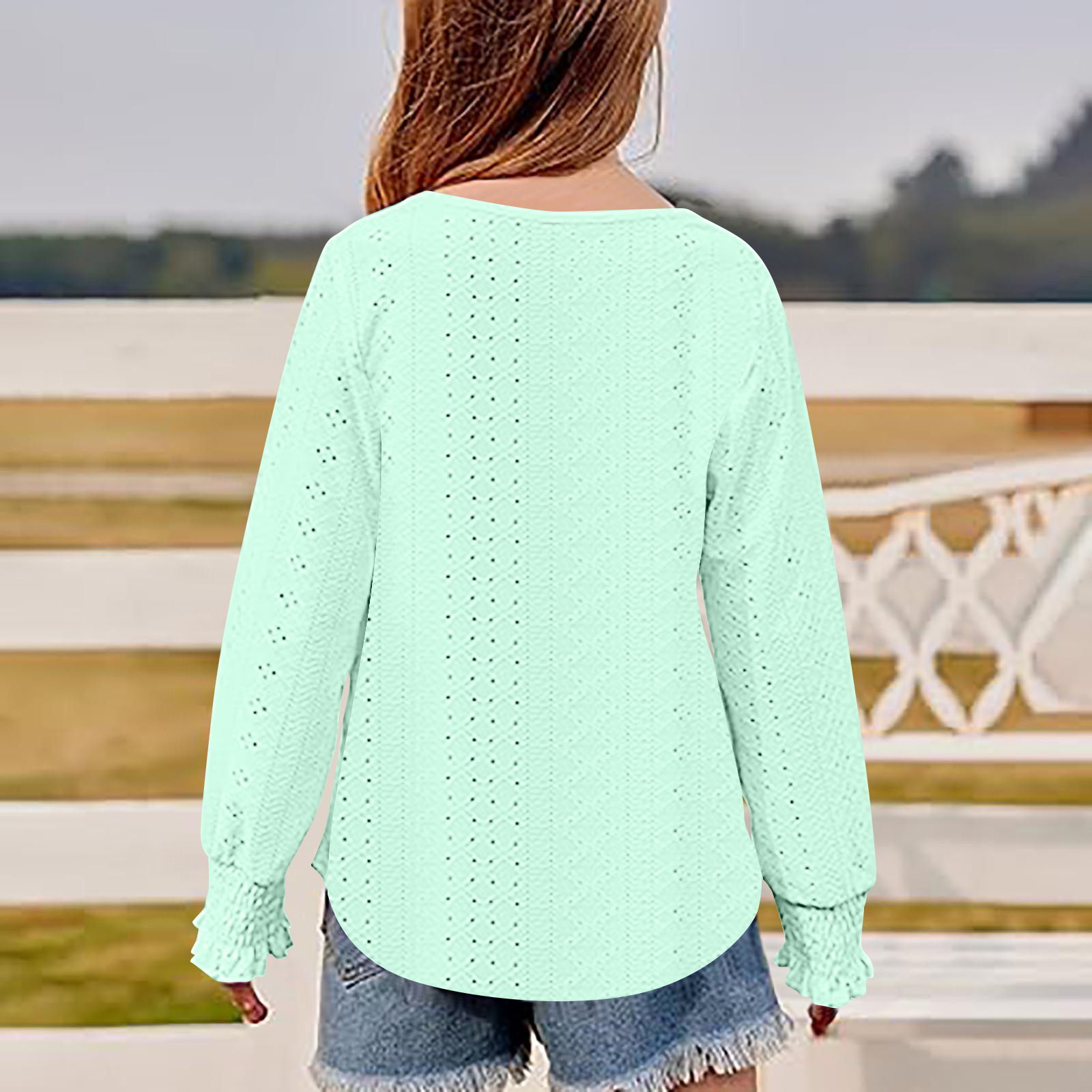 대외 무역 국경 새 어린이 캐주얼 크루 넥 풀오버 긴 소매 할로우 봄 여름 가을 소녀 티셔츠 탑