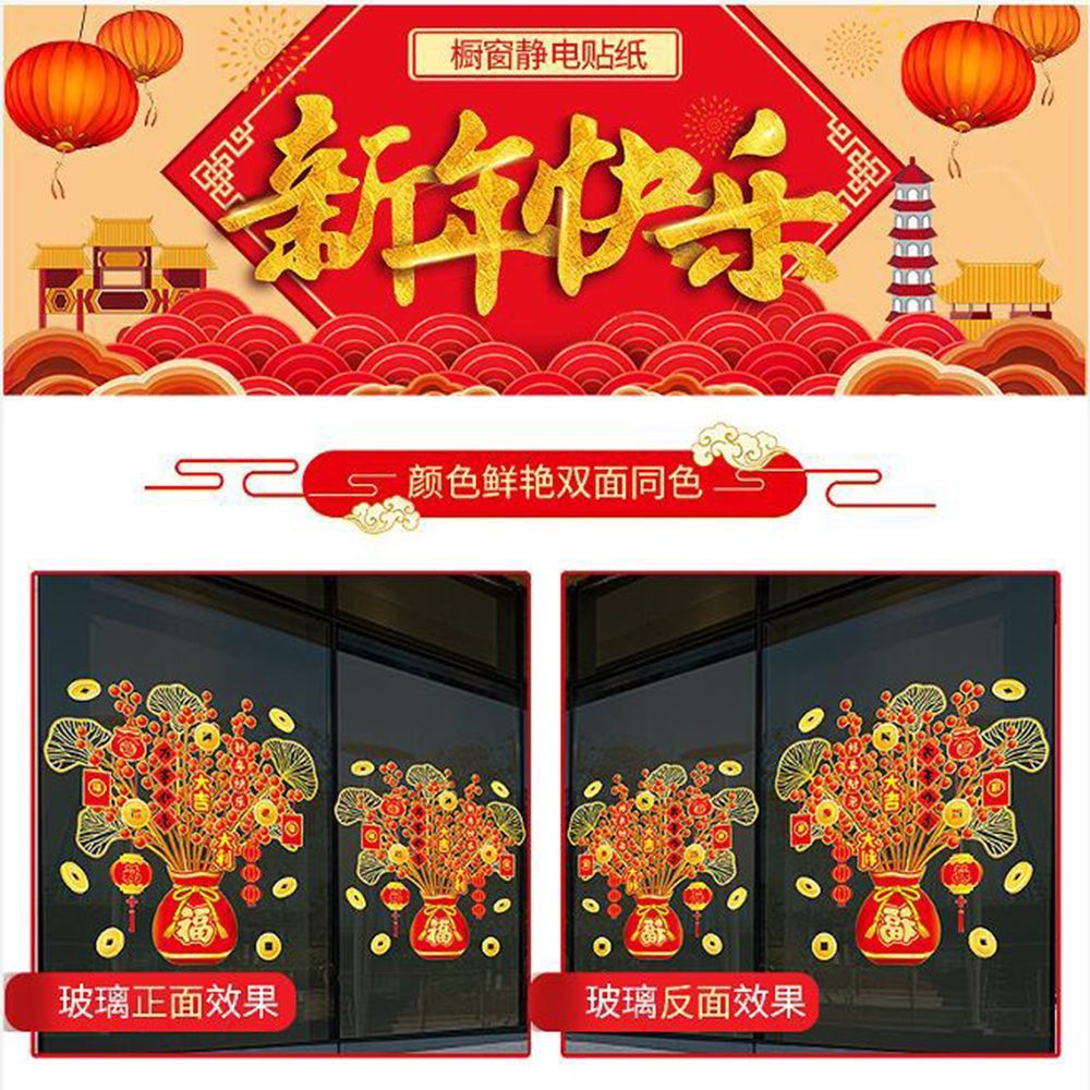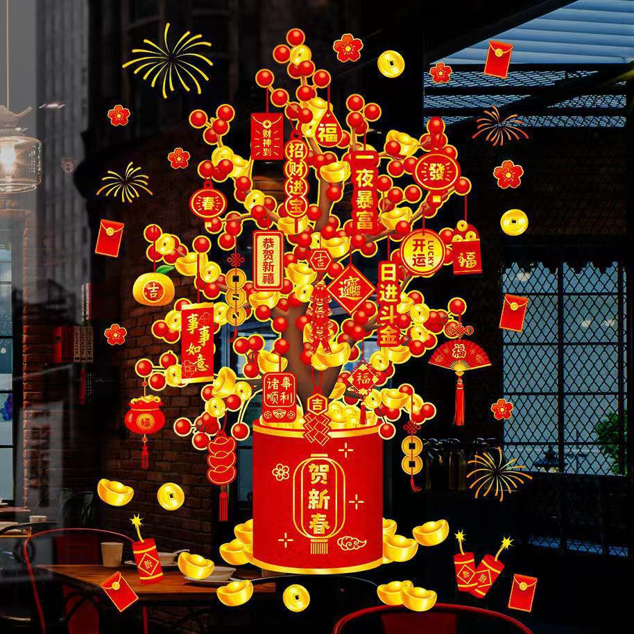 도매 봄 축제 새해 포춘 트리 유리 도어 스티커 정전기 스티커 축제 봄 축제 새해 장식 창 스티커 창 꽃스토어 가기