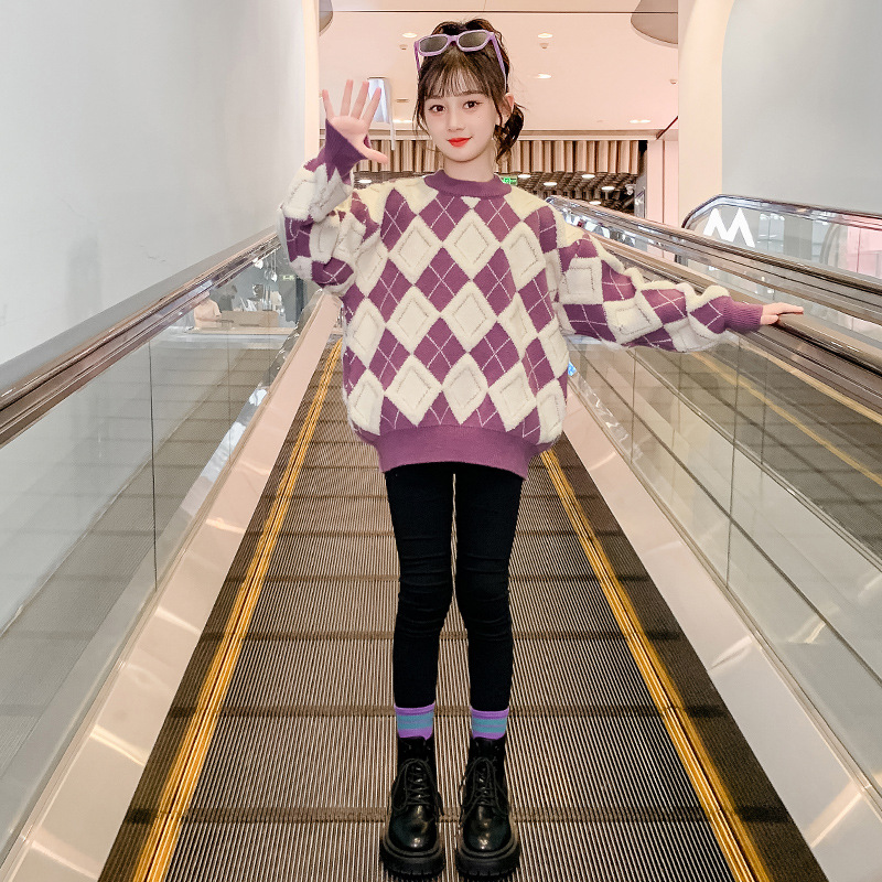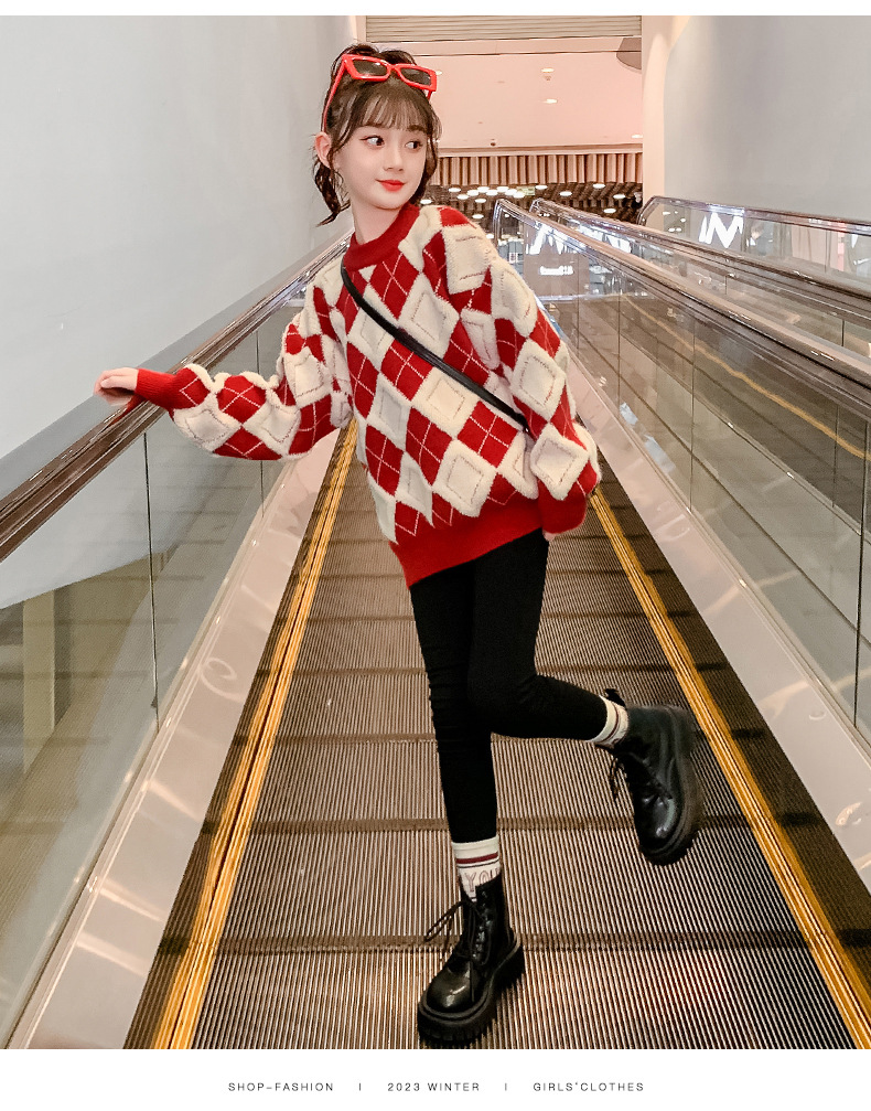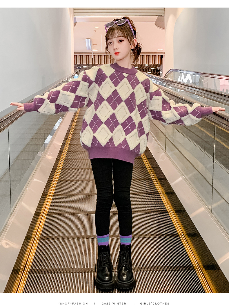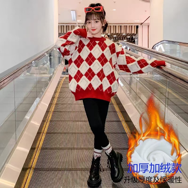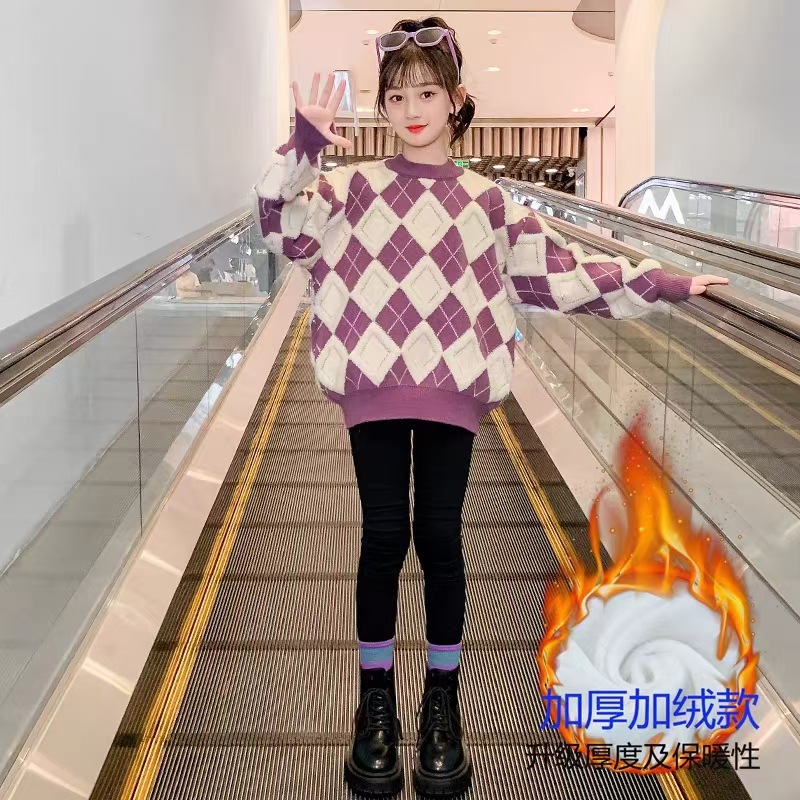여자 스웨터 2024 겨울 새 어린이 승무원 기모 소녀베이스 셔츠스토어 가기