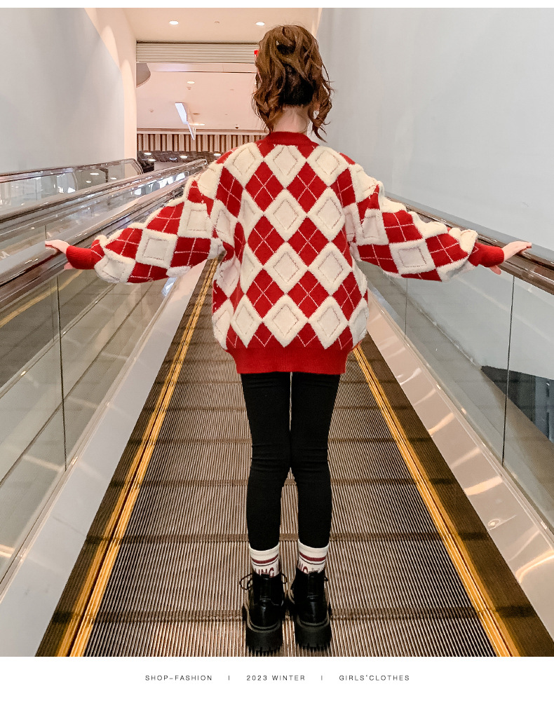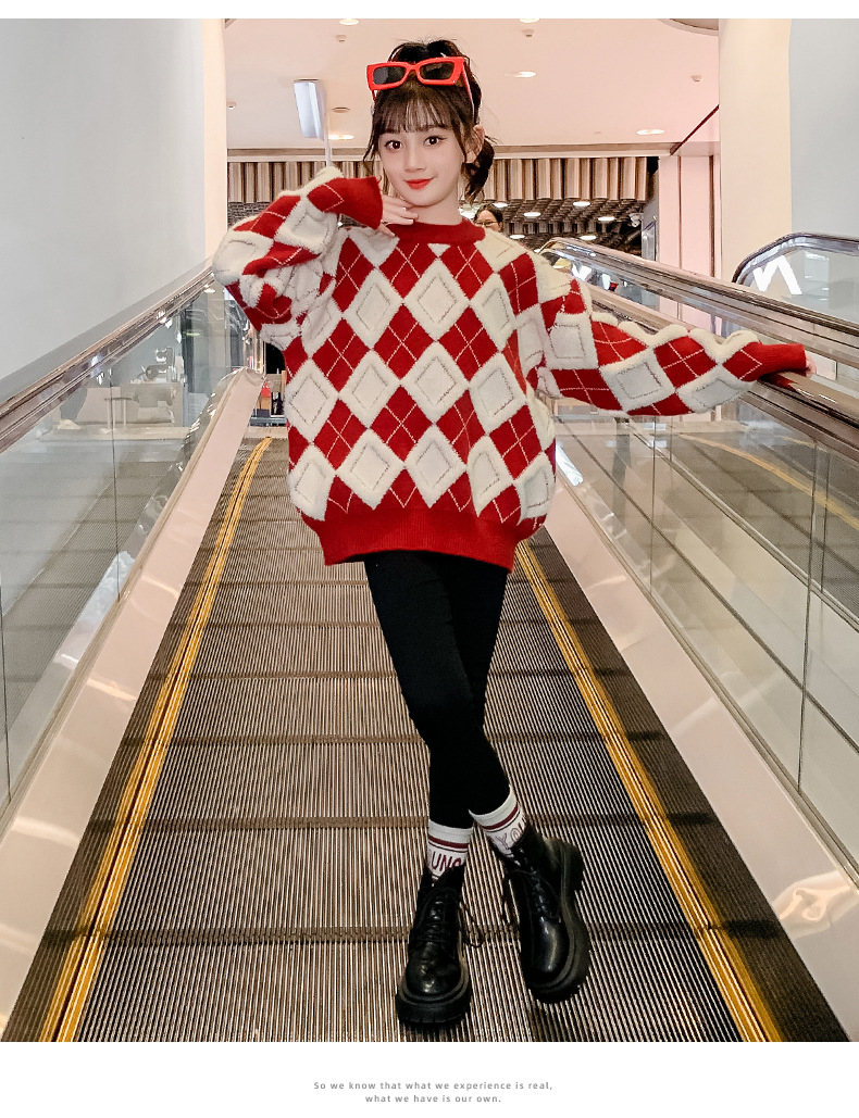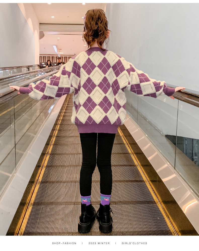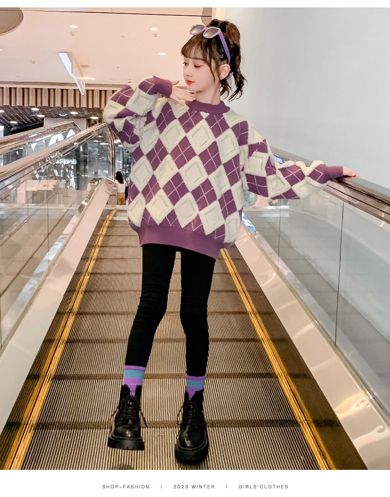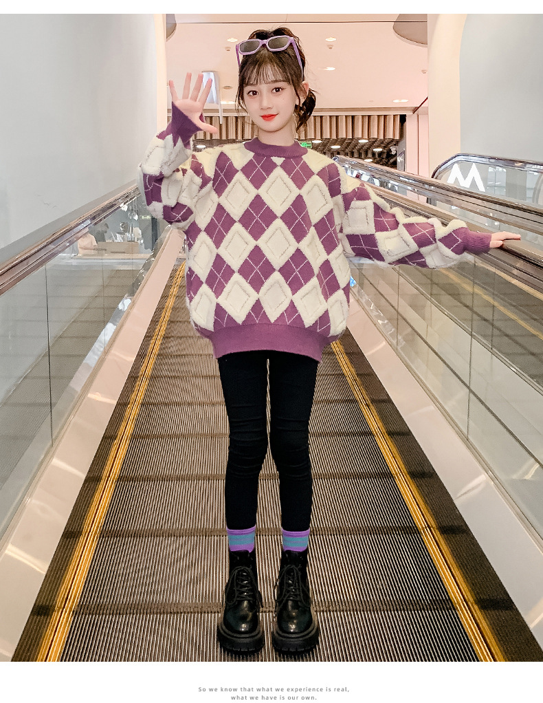 여자 스웨터 2024 겨울 새 어린이 승무원 기모 소녀베이스 셔츠스토어 가기