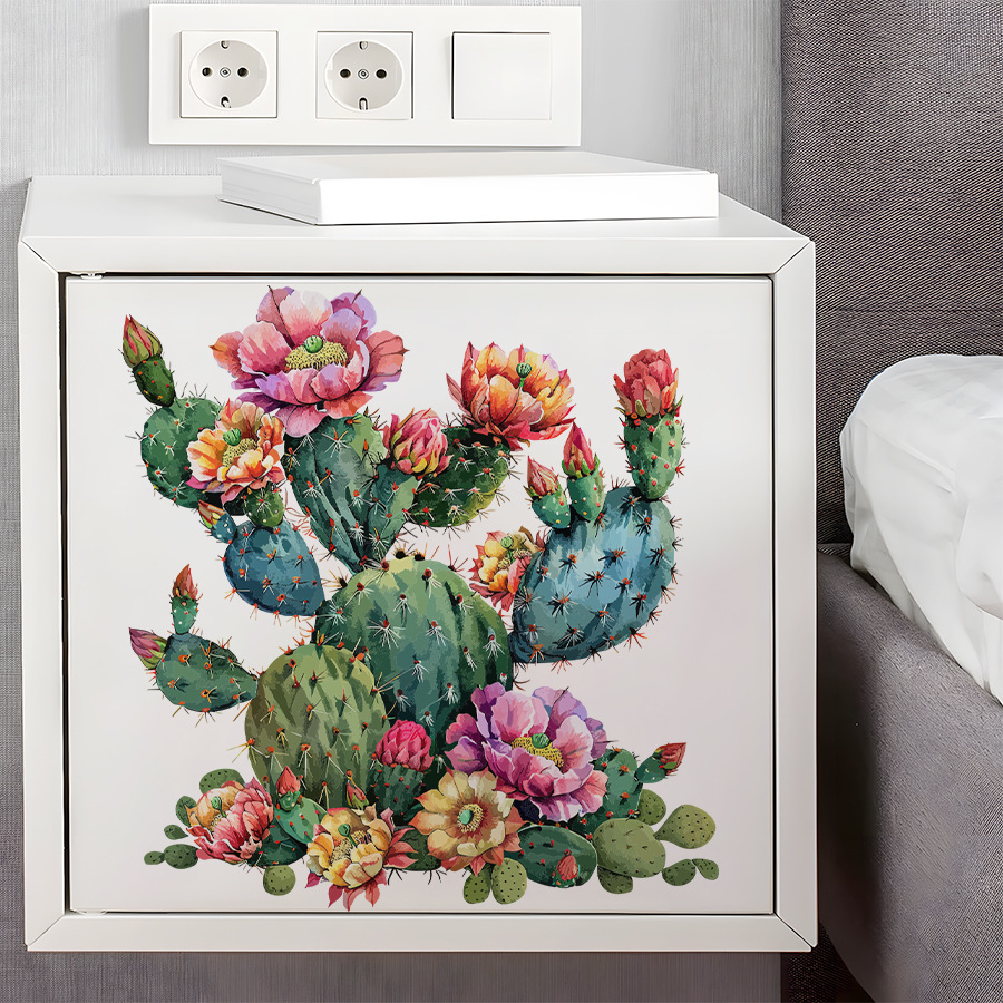 수채화 현실적인 선인장 꽃 자기 접착 벽 스티커 침실 주방 냉장고 옷장 문 장식 스티커 BR3373Q
