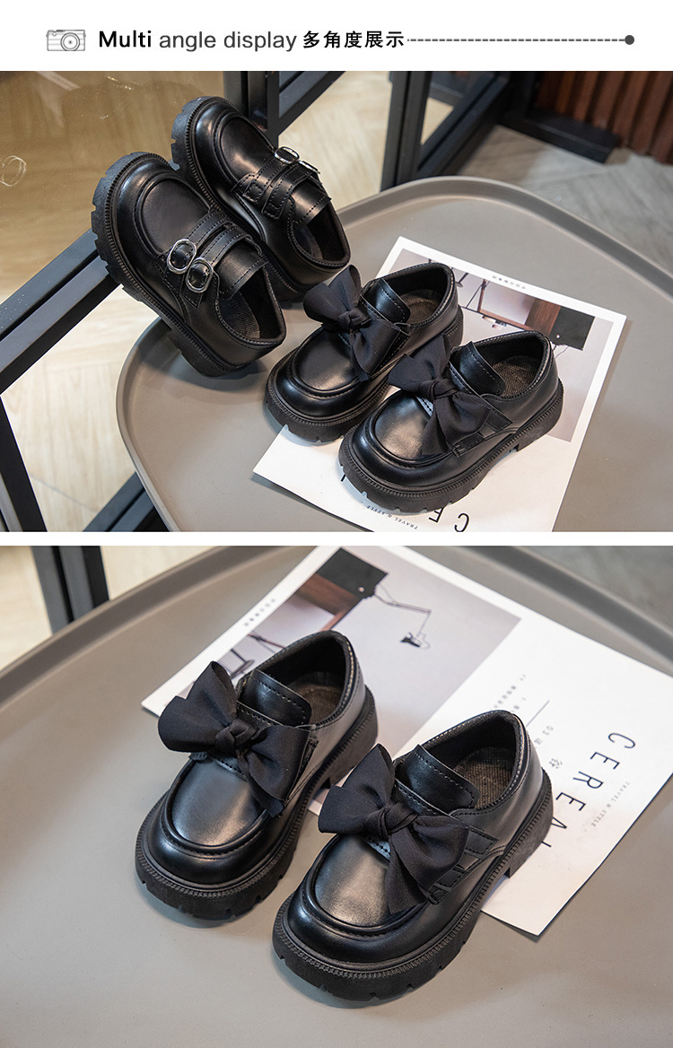 소녀 가죽 신발 2025 봄과 가을 새로운 어린이 공연 신발 검은 소녀 세련된 부드러운 밑창 공주 신발스토어 가기