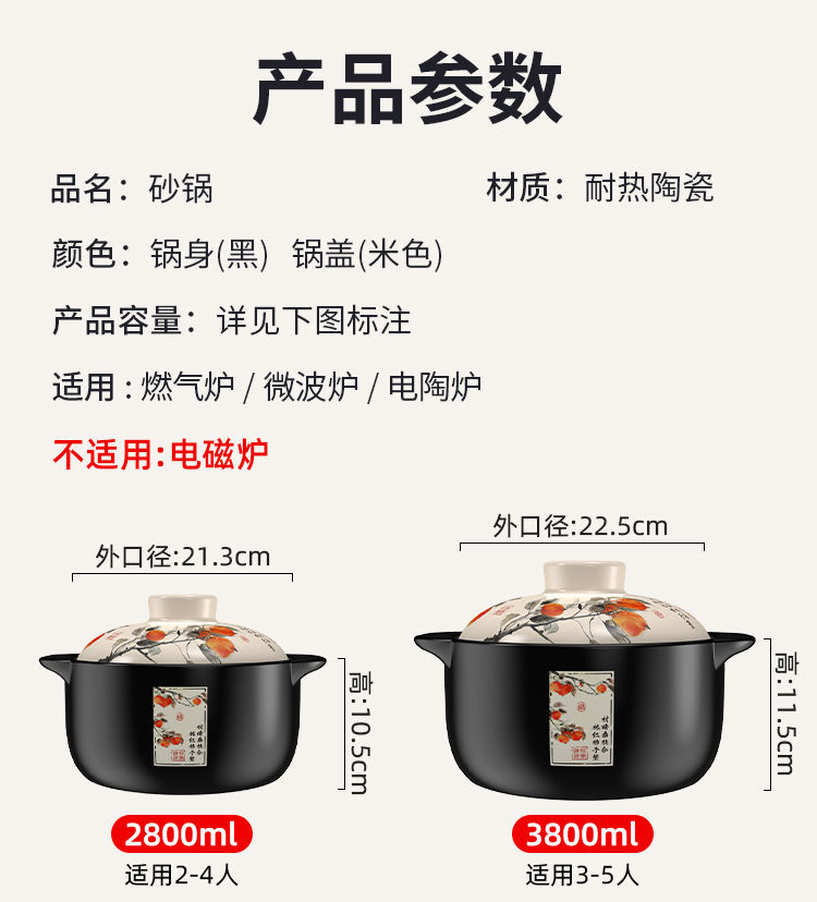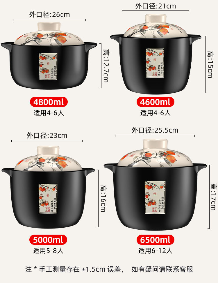 강슈 캐서롤 대용량 드라이 버닝 비 크래킹 캐서롤 고온 내성 오픈 화재 천연 가스 특수 스튜 냄비 수프 캐서롤 냄비스토어 가기