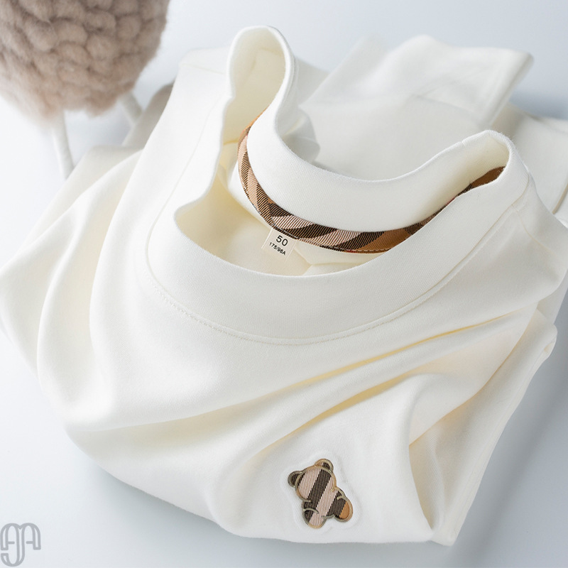 가벼운 고급 고급 유럽 제품 가을과 겨울 따뜻한 흰색 티셔츠 남성용 긴팔 슬림 핏 프린트 베어 베이스 셔츠스토어 가기