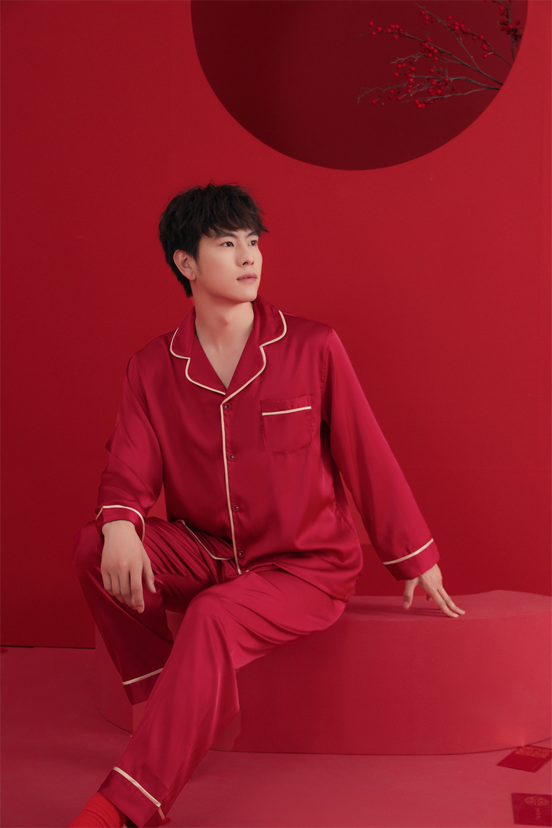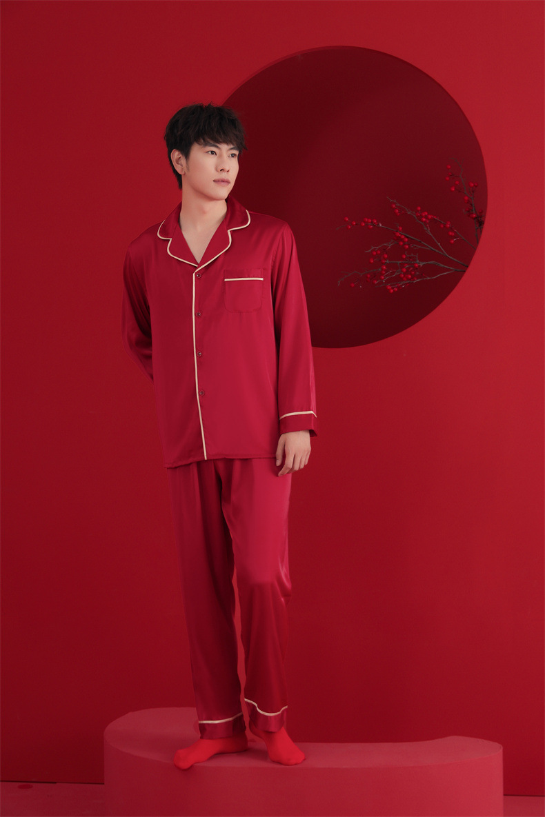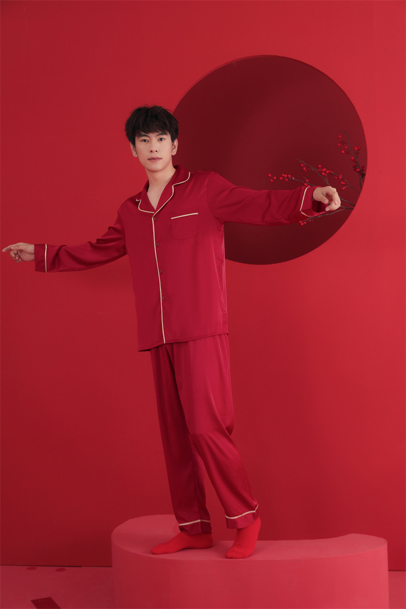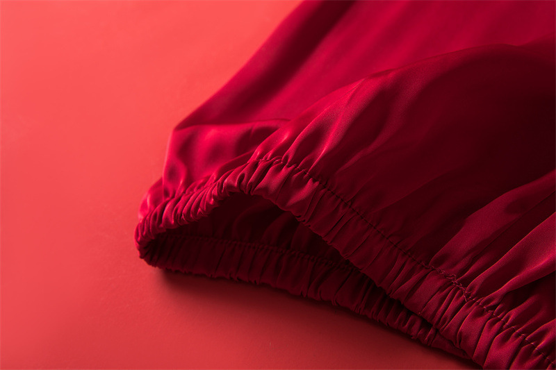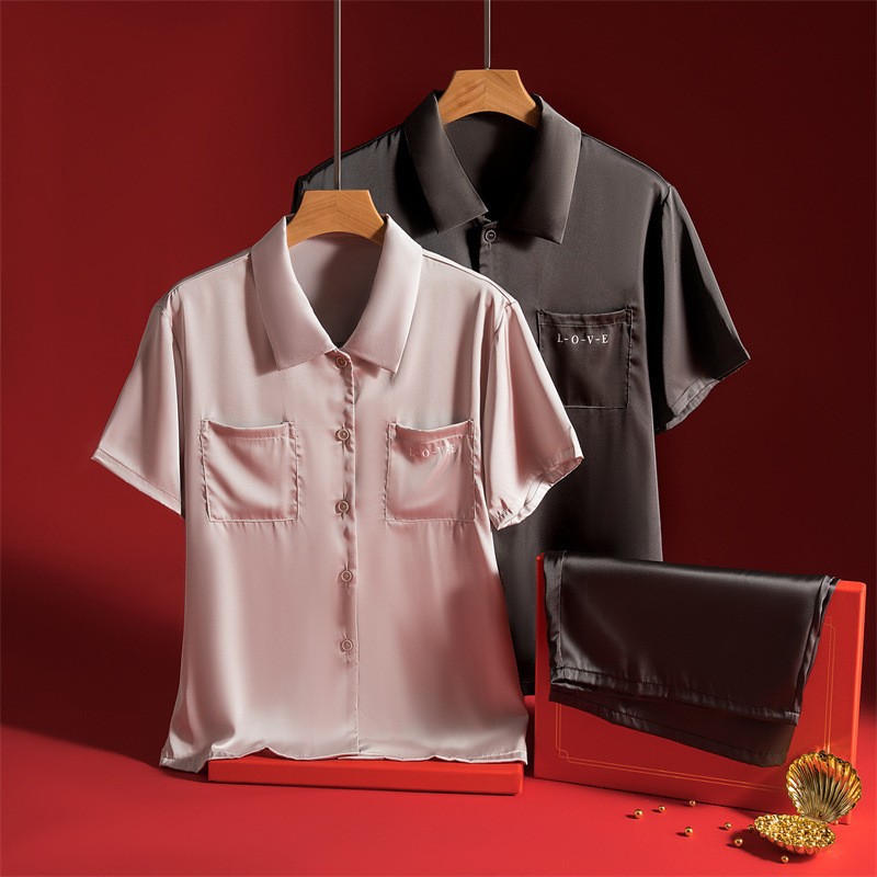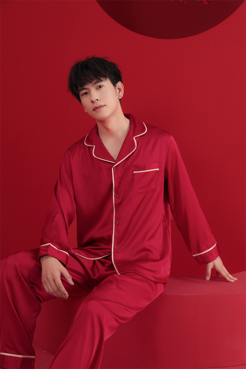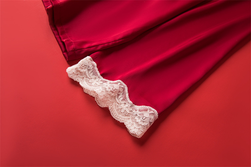 웨딩 커플 잠옷 여성의 봄과 가을 아이스 실크 긴팔 플러스 사이즈 단색 세트 여름 빨간 집 옷스토어 가기