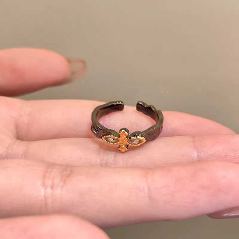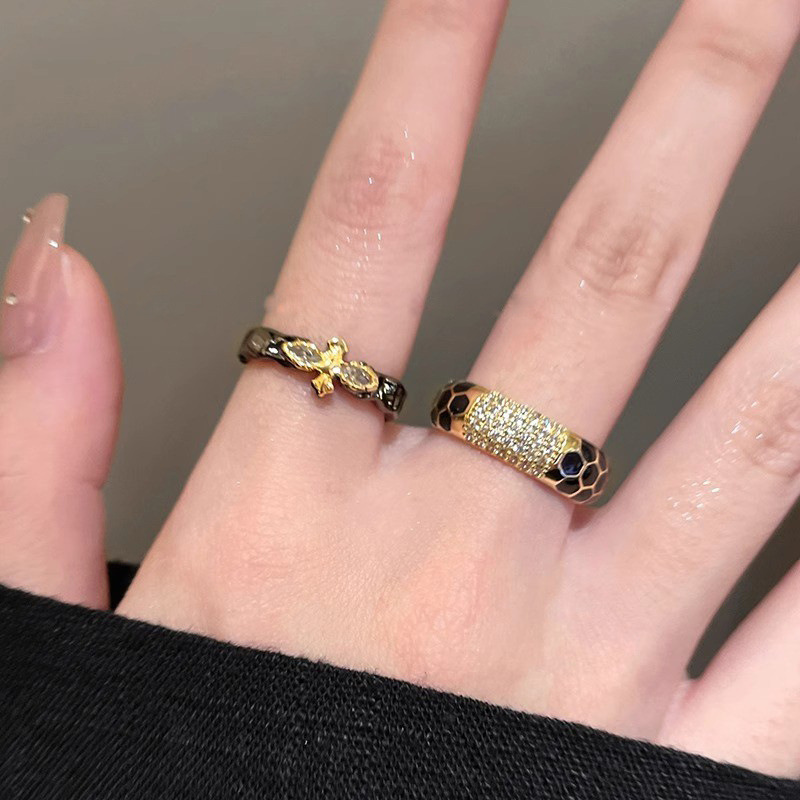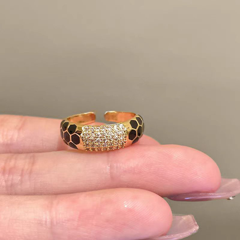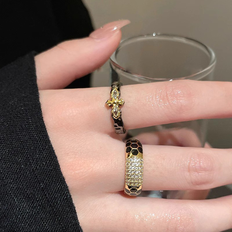 블랙 골드 화이트 스톤 링 틈새 라이트 럭셔리 디자인 센스 간단한 가을과 겨울 개성 클립 절묘한 패션 올 매치 레트로 링