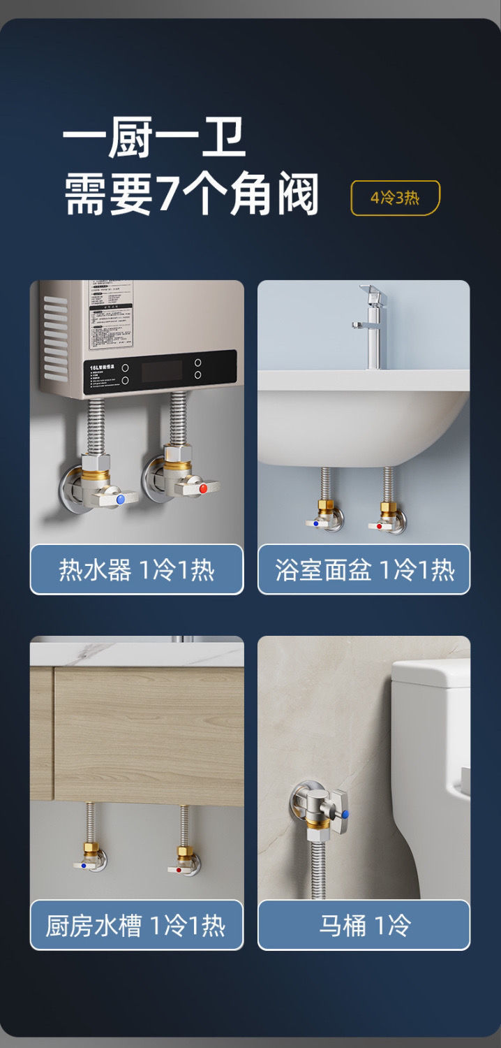 볼 코어 모든 구리 냉수 및 온수 가스 온수기 전용 볼 밸브는 큰 흐름 각도 밸브 삼각형 밸브 스위치 4 점을 완전히 엽니 다.스토어 가기