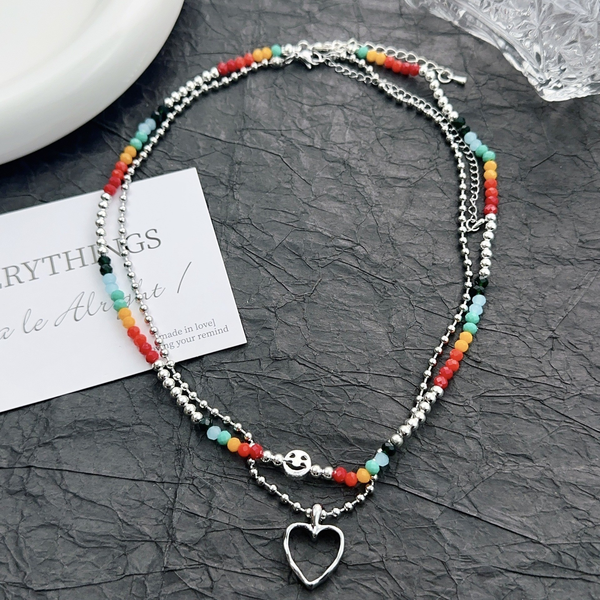 도파민 컬러 비즈 스마일리 사랑 더블 레이어 폴드 목걸이 착용 여성 패션 맞춤형 힙합 모직 체인 액세서리 트렌디